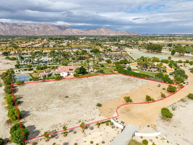 Welcome to the prestigious gated enclave of La Quinta Polo Estates--an exclusive community of luxury estate homes where you can bring your vision to life and build your custom dream residence. This exceptional PRIME 2.5-acre lot offers the perfect canvas to create your private desert retreat, surrounded by breathtaking southwest-facing mountain views and the serenity of a cul-de-sac location. Design and build the ultimate estate with endless possibilities--add a resort-style pool and spa, private gym, guest casita, pickelball court, horse stables, and more. This premier estate view lot is among the most desirable within Polo Estates. The property includes completed soil and environmental enhancement testing, plus HOA-approved architectural and landscape plans for a stunning 6,800 sq. ft. custom home (drawings and plans included). A 4,500 sq. ft. minimum building requirement ensures architectural consistency and elegance throughout the neighborhood. Located just across from the Empire Polo Club--home of the world-famous Coachella Fest and Stagecoach music festivals--this prime location places you minutes from Old Town La Quinta's boutiques and dining, and world-class golf at nearby La Quinta Resort & Club and PGA West. This is a rare opportunity to secure one of the finest lots in the valley's most coveted estate communities. Call the listing agent for additional details and to schedule your private tour.