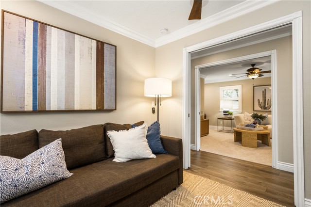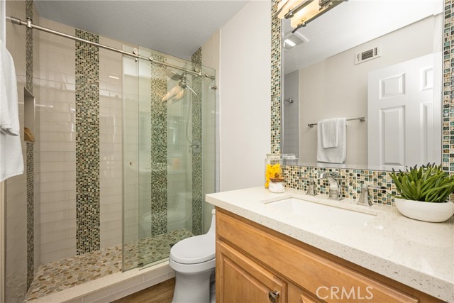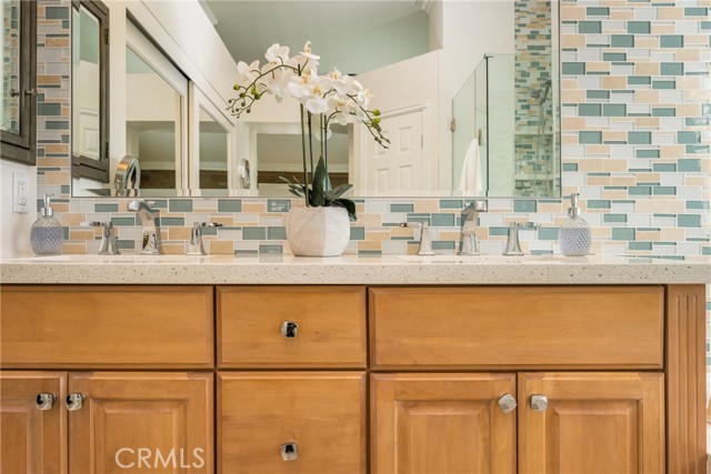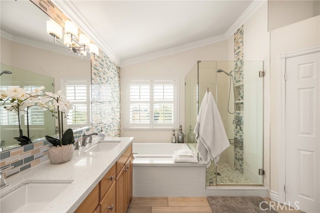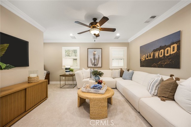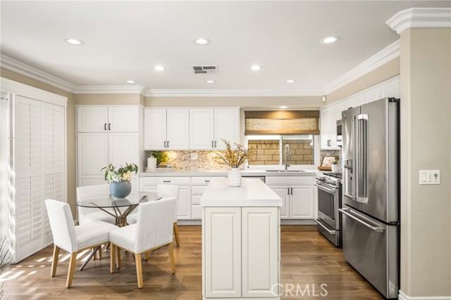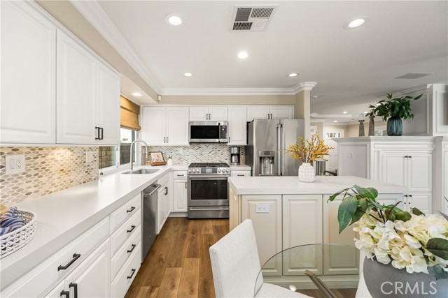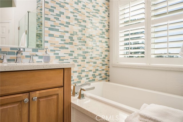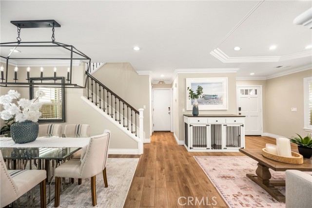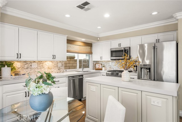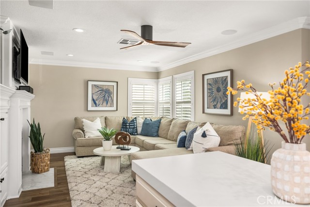 Stop looking — this is the one you’ve been searching for! You won't find anything comparable in Irvine at this price. Live the Southern California lifestyle you've always dreamed of in the enchanting community of Foothill Ranch, surrounded by picturesque rolling hills. This premier location features a backyard with an in-ground pebble-tech spa, custom built-in BBQ and bar, covered patio, and professional landscape lighting hardwired with self-timers — all offering exceptional privacy and panoramic views. Upon arrival, you'll notice the charming curb appeal, with brick accents and well-manicured landscaping featuring artificial turf. This stunning property boasts four bedrooms, two and a half bathrooms, plus a bonus/office/media room that could easily be converted into a fifth bedroom. Step inside and be greeted by an open floor plan with bright, neutral décor throughout. The living room and formal dining area are ideal for hosting dinner parties and holiday celebrations. You'll love the remodeled chef-inspired kitchen, featuring quartz countertops, custom white cabinetry, designer backsplash, center island, stainless steel GE Café appliances, recessed lighting, pantry, and breakfast nook. Movie nights will never be the same in the family room with a built-in entertainment center, 4K OLED TV, and POLK surround sound. A convenient downstairs laundry room includes extra under-stair storage space. Efficiency meets comfort with a whole-house fan, PEX repipe, Energy Star Low-E vinyl windows, and a Trane AC system. Custom upgrades include plantation shutters, upgraded baseboards, and crown molding, upgraded light fixtures, new carpeting, luxury vinyl flooring, a Honeywell Pro Alarm System, GE whole-house water system, new hot water tank, epoxy garage floor coating, and insulated garage doors. Upstairs, you will be delighted by a remodeled primary suite featuring high-volume ceilings, a beautifully updated bath with a walk-in shower, separate oval soaking tub, custom vanity, large walk-in closet with organizers, and mirrored wardrobes. The multipurpose media/bonus room includes surround sound speakers, and three additional bedrooms share a remodeled secondary bath. This wonderful home has all the bells and whistles you’ve been dreaming of. Hurry — the sellers have priced this home to sell fast!