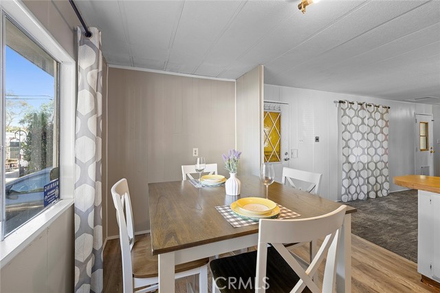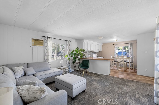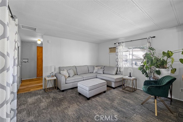 Located in a well maintained 55+ community, this one bedroom manufactured home offers great potential. This open floor plan features a light and bright interior with large windows that bring in plenty of natural light. Two wall A/C units provides cooling throughout, in unit laundry hookups for added convenience. Parking is located directly in front of the home for easy access. Don't miss your chance to own in a community close to shopping, parks and freeways.
