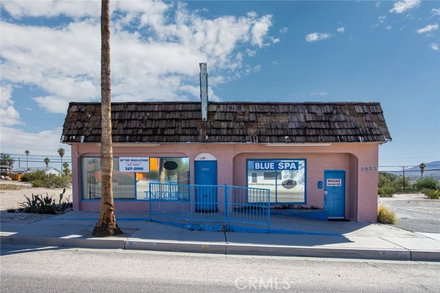 $275K!!! BEST BUY COMMERCIAL in 29 Palms!!! TWO BUSINESS FRONT BUILDINGS (attached) in downtown. TWO STREET ADDRESSES: 5929 & 5933 ADOBE ROAD. No other commercial property with this much space for sale at this price. GREAT BUY. Once side it currently set up for hair stylist. Buyer to call City Hall for uses. Fantastic investment. Schedule a showing with you agent today!!!