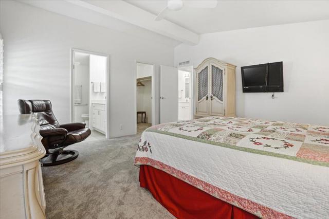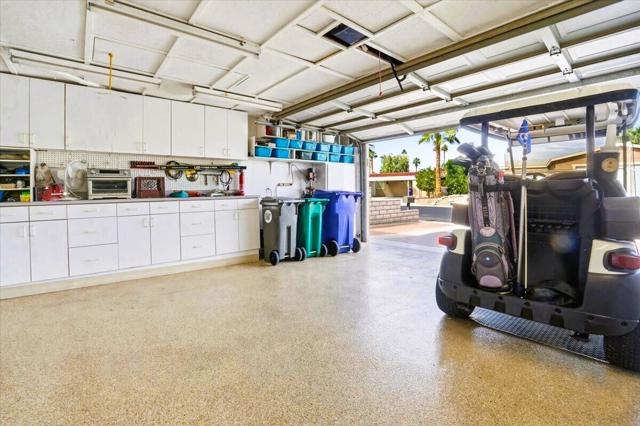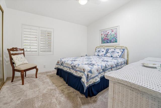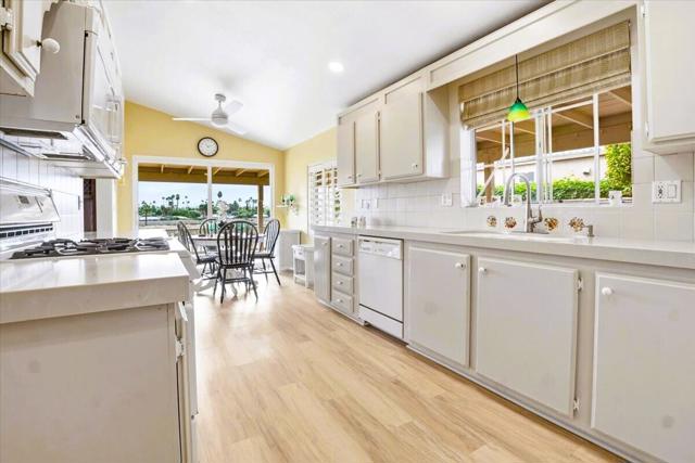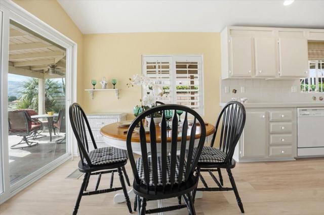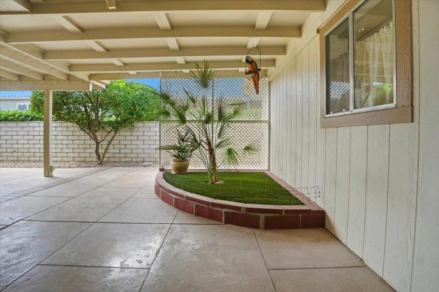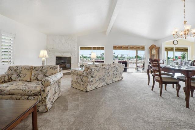 Breathtaking panoramic views of the Santa Rosa Mountains are yours as you enjoy living in this perfect turnkey home-- Furnishings included, assumable Solar lease & permanent foundation for ease of financing. Great curb appeal with 2-car garage, desert landscaping & high-end decorative stone driveway. Enter in to the living room with high plaster ceilings, lots of light from the French sliding doors with unlimited mountain views. A gas fireplace for that winter ambiance, separate media tv space & dining area for entertaining your guests as they enjoy the views. New carpeting & laminate flooring throughout. The kitchen has a wonderful dining area as well with plantation shutters, a round pedestal table perfectly placed for morning breakfast & coffee while enjoying the peaceful view. Quartz counters, large double sink, gas stove & oven for the discerning Chef in you. This home not only has two bedrooms but an additional reading/hobby room and also a private office with built-in shelving & computer station. The primary bedroom has a walk-in closet, ceiling fan & en-suite bath with separate shower & soaking tub. New flooring, toilet & vanity. Your guests will love the newly remodeled guest bath with tile shower, new flooring, vanity & toilet. The guest room has ceiling fan & plantation shutters. One of the best features of this home is the wrap-around covered patio with decorative custom concrete tiles. There is an outdoor dining area for your Alfresco entertaining, with ceiling fan & lovely patio furniture with plenty of seating. You can spend hours enjoying the views & seeing the birds soaring over the riverbed. The garage is a dream with epoxy flooring, tons of built in storage, sink & laundry area. Everything needed for the organized garage, including your own golfcart! Portola C.C. is one of the most desirable 55+gated communities in Palm Desert & not only do you own the land, but the low HOA fee includes the l8-hole par 3 golf course for the owners. The newly remodeded clubhouse has its own Pub, fitness room, billiards,& commercial kitchen for all of the great community get-togethers. There are 3 pools, pickleball, bocce ball & tennis courts,dog park & plenty of social clubs & activities to enjoy. We are well-located near El Paseo & all of its shops & restaurants & the Palm Desert Park with its walking trails & Aquatic Center, McCallum Theatre & Eisenhower Hospital for your medical needs. Make an appt. to see this great home!