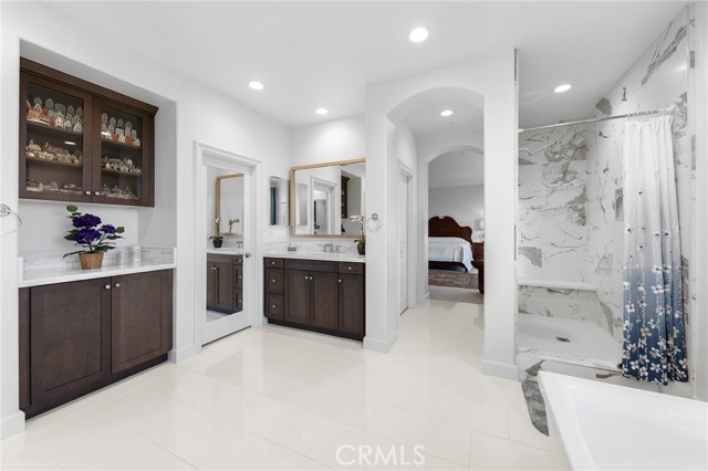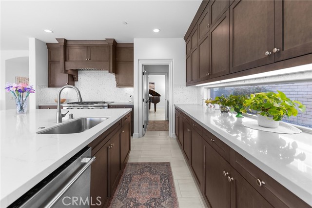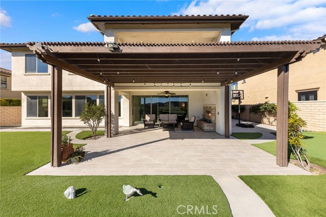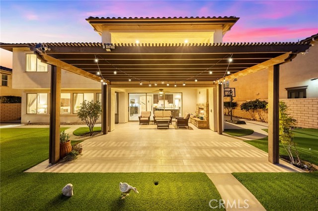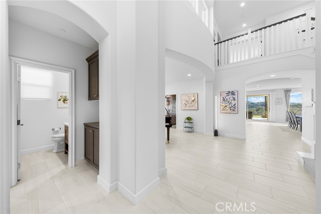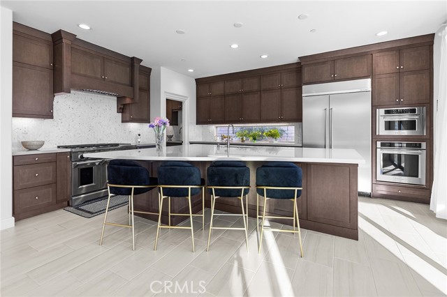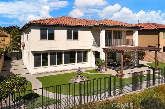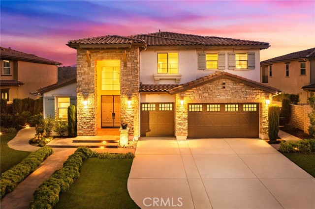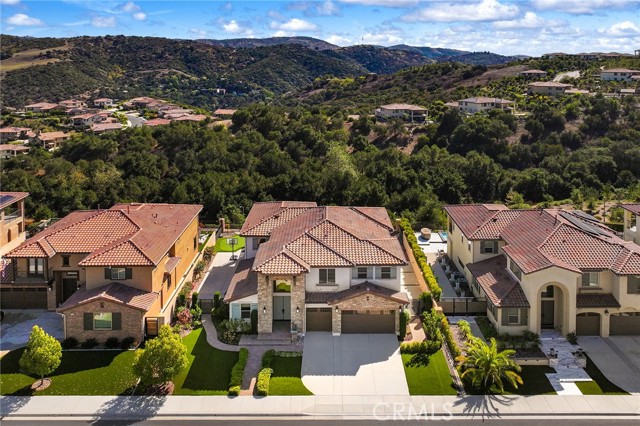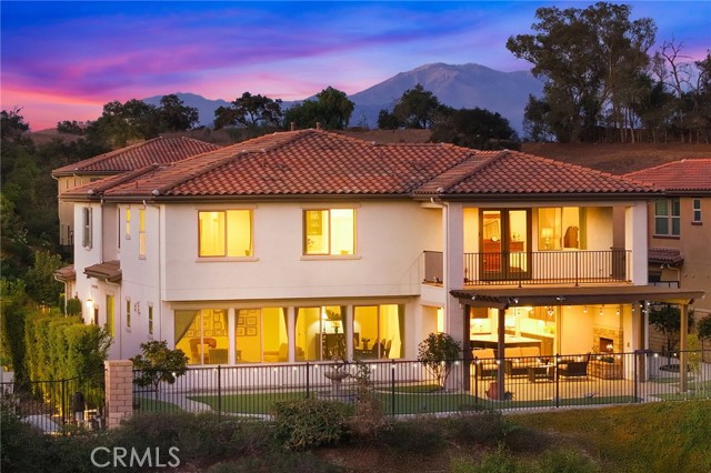 View! View! View! Located in the prestigious gated community of Hillcrest Estate, this elegant estate showcases timeless luxury, privacy, and stunning rolling hills views. Featuring 5 bedrooms and 5.5 bathrooms, plus an office and loft (1 bedroom and 1.5 bathrooms downstairs), and a 3-car garage. Every detail of this home blends comfort and sophistication. A grand double-door entry welcomes you into a soaring high-ceiling foyer, setting the tone for the home’s impressive scale and flow. To the left is a spacious home office or fitness room, conveniently next to a guest powder room. Continue through to the formal dining room, which opens into an expansive great room—the heart of the home—where the family room and chef’s kitchen connect seamlessly. The kitchen is a showpiece with floor-to-ceiling shaker cabinets, quartz countertops, an oversized center island with breakfast bar, and premium KitchenAid stainless steel appliances, including a built-in refrigerator, 6-burner stove with griddle, and built-in microwave and oven. This chef’s kitchen is also complemented by a separate wok kitchen designed for additional convenience. Expansive glass walls along the kitchen and family room flood the space with natural light and frame the beautifully landscaped backyard and breathtaking mountain views. The great room features an elegant fireplace. A downstairs ensuite bedroom provides ideal privacy for guests. A spacious loft upstairs is great for family entertainment. The luxurious primary suite boasts a large private balcony capturing sweeping mountain vistas, a spa-inspired bath, separate shower, and dual oversized walk-in closets for him and her. Upstairs also features three more ensuite bedrooms, each with its own full bath. Other features include premium tiles downstairs and in bathrooms, carpet flooring in all the bedrooms, custom window curtains and roller shades, custom two-tone paint, and recessed lights. Upstairs laundry room with sink. The beautiful backyard offers effortless living with a covered California room, fireplace, wood patio, water fountain, putting green, and basketball area—perfect for family fun and entertaining. Low-maintenance artificial turf. Cul-de-sac location. Excellent Chino Hills schools: California Distinguished Canyon Hills Junior High and Ayala High. One of Chino Hills’ most exclusive and peaceful gated neighborhoods, this Hillcrest residence combines modern luxury with tranquil lifestyle and spectacular natural surroundings.