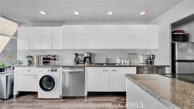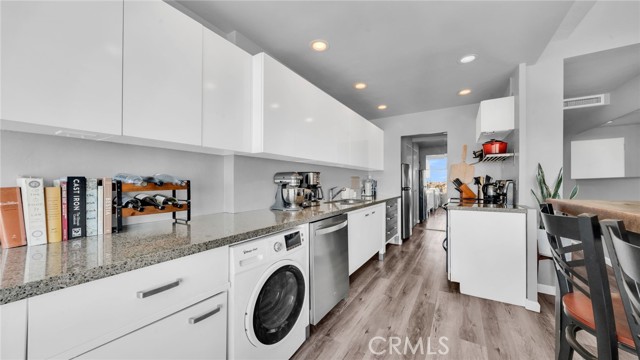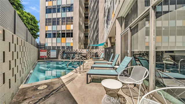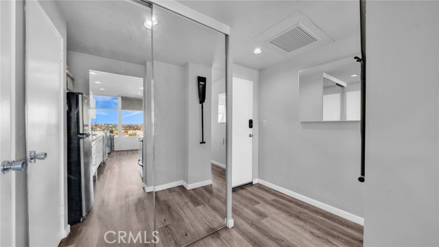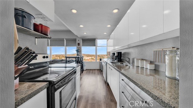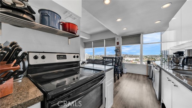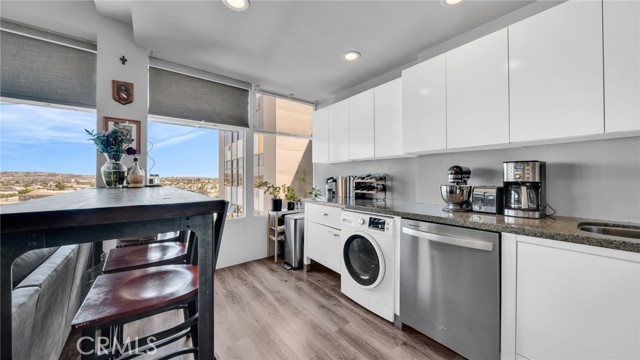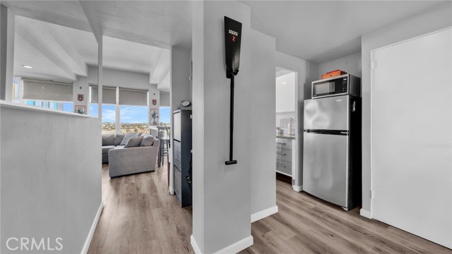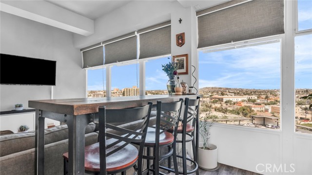 Experience the epitome of beach and urban living with this coveted 9th-floor CITY LIGHTS VIEW residence at the iconic Royal Palms! Nearly 500 sq ft of remodeled space which includes vinyl flooring & smart recessed lighting. This studio unit has been modified to include a separate bedroom space opening to the living room with double French doors. From the living room, enjoy mountain and city light views! The adjoining remodeled chic kitchen features quartz counters, contemporary footed cabinetry, stainless appliances, recessed lights, fridge and stainless drawers & shelving! Upgraded cabinetry in bath along with wand shower head and upgraded fixtures. Built-ins added inside the mirrored closet, plus extra storage in garage area. Royal Palms is a pet-friendly building; and your HOA includes hot & cold water, trash (and trash chute), heat, Amazon drop station, community pool, meeting room, security patrol and on-site management - plus coming-soon rooftop entertainment! You are in the heart of fabulous Restaurants, Shops, Art Galleries, the Performing Arts Center, the Metro, Shoreline Village - AND a hop and skip from the beach! Enjoy the monthly street fairs, art walks, annual Grand Prix and much more!