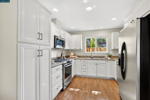 NORTHGATE NEW TO MARKET! Charming SINGLE-STORY, garden retreat tucked on a quiet court. This home features a welcoming living room with beautiful wood-beam ceiling, hardwood floors and fireplace. Updated kitchen and family room overlook the patio and garden - a peaceful setting for casual indoor-outdoor living. The vaulted entry and dining/entertaining space add openness and architectural interest, while the primary suite and three additional bedrooms provide room for guests, work, or hobbies. A perfect fit for those seeking a relaxed lifestyle with access to nearby Northgate schools, trails, parks, and shopping.
