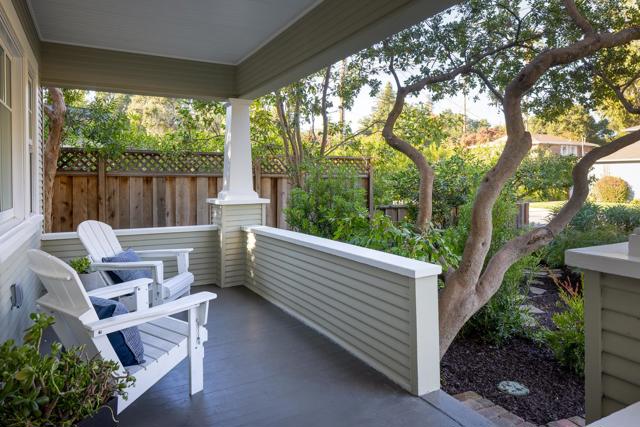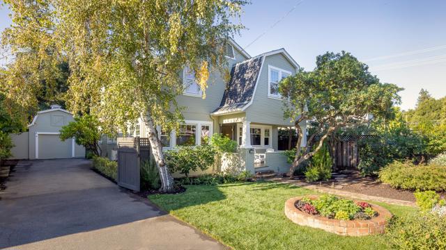 This enchanting Colonial Revival bungalow offers timeless character and modern livability in a premier downtown location just two blocks from Santa Cruz Avenue shops and restaurants. Distinguished by its Dutch-inspired roofline, the home features freshly painted interiors, beautiful hardwood floors, and refined of-the-era architectural details. The formal living room showcases a glass-enclosed fireplace while the adjoining dining room echoes the elegant moldings. The chefs kitchen combines period charm with modern efficiency through a custom color palette, Cafe stainless steel appliances, and Corian countertops, along with breakfast bar seating, a casual dining area, concealed laundry plus French doors to the rear yard. There is also a spacious family room that opens to the rear yard. 3 upstairs bedrooms (plus a bonus room) include a primary suite with shared balcony, walk-in closet, and updated bath. Surrounded by refreshed landscaping, new lawns, and flagstone patios, this turn-key home offers classic architecture, modern updates, and blocks-way convenience to downtown as well as access to acclaimed Menlo Park schools.