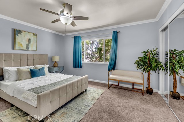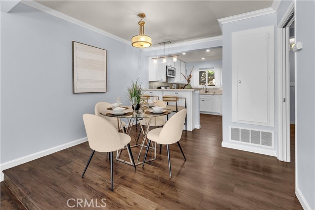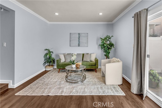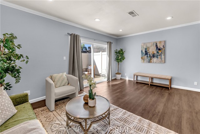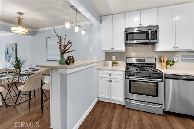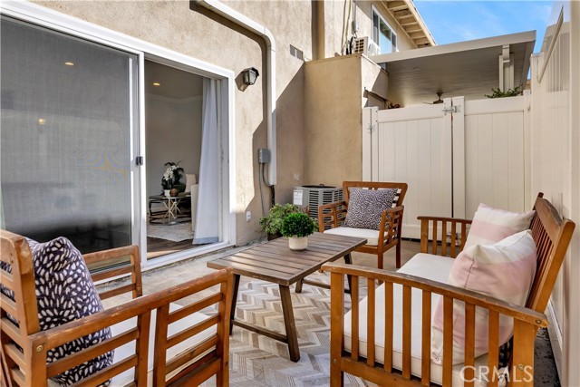 Beautifully remodeled and upgraded 2 bedroom, 2 bath, condo nestled in a peaceful complex with lush landscaping in northeast Santa Ana. Enjoy easy access to shopping, dining, freeways and schools in the Tustin School District. Also just minutes from Old Towne Orange, Downtown Santa Ana, and Main Place Mall. Welcome home to this stunning, move-in ready, two-story unit offering the perfect blend of modern style and comfort. The updated kitchen boasts quartz countertops, white shaker cabinets, and stainless steel appliances. Enjoy a nice breakfast bar with plenty of under-counter storage and separate dining area ideal for family meals. Step-down to find a bright and open living room with recessed lighting and sliding glass doors that lead to a nice sized private patio, perfect for your morning coffee. The entire first level features luxury vinyl, water-resistant flooring and brand new carpeting upstairs. Both bathrooms have been tastefully remodeled with contemporary fixtures and tile work. Upstairs the bedrooms offer ample natural light, generous closet space and the primary bedroom offers a peaceful, tree lined view of the green area. Also, conveniently located upstairs is a stackable washer and dryer. The entire home received a fresh coat of paint and been upgraded with central air conditioning for those hot summer California days! This is the perfect turnkey home you’ve been waiting for – move right in and start living your best life!
