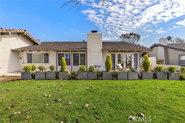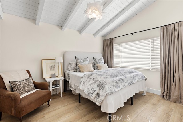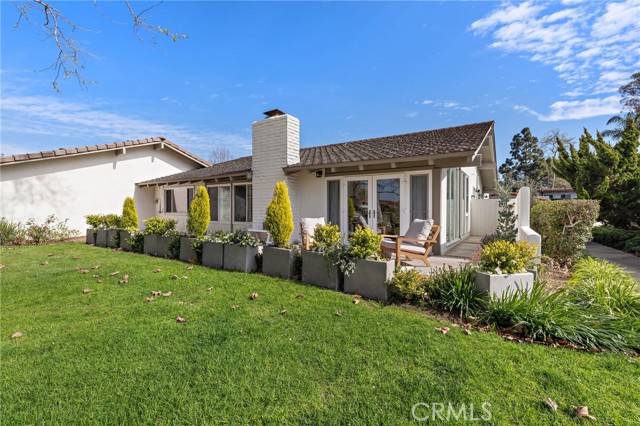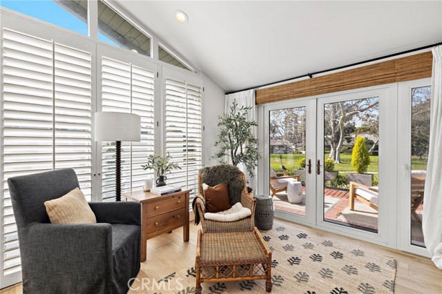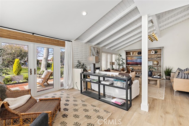 Don't miss out on this expanded end unit Angelita model. This lovely single level home has two bedrooms, two baths plus an office or crafts room. You will love the prime Bluffs location. Enjoy the afternoon sun and park like setting from your spacious back patio. Vaulted wood beamed ceilings compliment the floor plan. Updated throughout, spacious master suite with a walk-in shower, bench seating and frameless shower enclosure that looks onto a private atrium. The kitchen has been remodeled with quartz countertops, tiled back splash and current cabinets and appliances. Light wood plank vinyl flooring is water and scratch resistant. Other upgrades include a complete above ground re-plumb, air conditioning, forced air heating and the interior has been freshly painted. The garage walls and ceiling are finished and freshly painted with canned lighting and epoxy flooring. Just steps to one of the two full time heated Community pools.