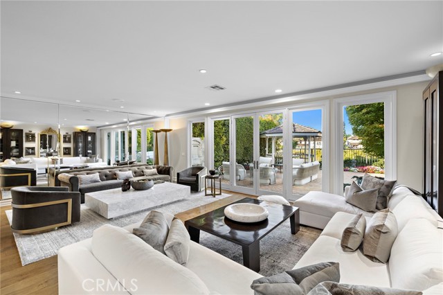 Overlooking the 18th fairway, this home offers unobstructed golf course views and a rare blend of privacy, sophistication, and effortless coastal living in the exclusive guard-gated community of Big Canyon. The expanded floor plan reveals a bright, open-concept layout designed for modern living. The living and dining areas are united by a dual-sided fireplace and walls of glass that open to a spacious back patio finished with patterned brick and a charming gazebo - ideal for outdoor dining. The kitchen is equipped for entertaining with granite countertops, professional-grade appliances including dual ovens, two dishwashers, a six-burner cooktop, Sub-Zero refrigerator, and a walk-in pantry. Designed for comfort, this home features four bedrooms, three with ensuite bathrooms. The main-level suite offers direct patio access and an adjacent private bedroom/office, while dual upstairs suites include one with a private balcony overlooking the fairway, perfect for morning coffee or a quiet sunset retreat. Additional highlights include abundant natural light, recessed lighting, custom closets, and thoughtful storage throughout. Every detail reflects a balance of elegance and livability, making this home an ideal primary residence or luxurious retreat in Newport Beach. Enjoy the coveted Big Canyon lifestyle with 24-hour guard-gated security, scenic golf course surroundings, and an unbeatable location moments from Fashion Island, world-class restaurants, coastal trails, and the area’s finest beaches. This is the refined, relaxed, and effortless lifestyle you’ve been looking for.