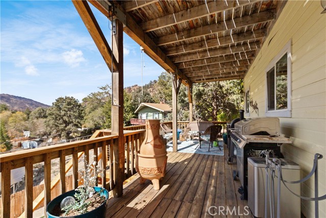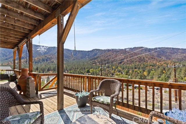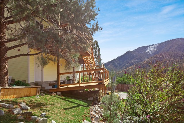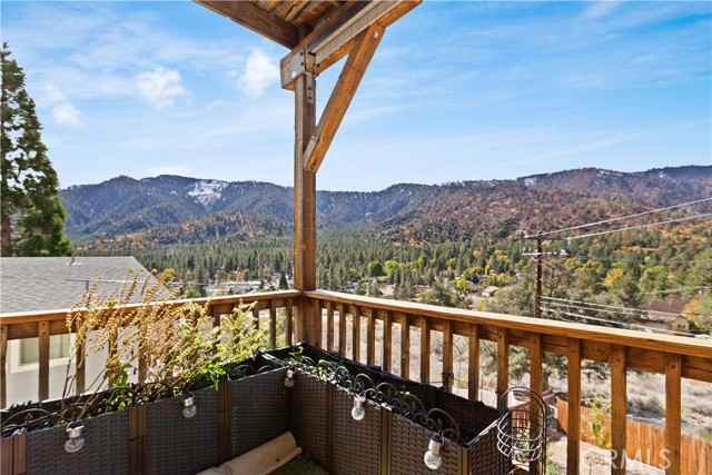 Discover this stunning home on the sunny side of Wrightwood, where the sunlight bathes the property and snow melts quickly away. Nestled on a peaceful cul-de-sac on Apple Vista Drive in the secluded neighborhood located up Rivera Dr. This elevated residence offers breathtaking, unobstructed views of the north facing mountains preserving the snow covered landscape longer than any other part of town. Built in 2007, this spacious 2,631-square-foot home features 3 bedrooms and 3 full bathrooms. The chef’s kitchen is equipped with highend stainless steel appliances, a large countertop burner, granite countertops, and custom cabinetry. Ample storage options include a walk-in pantry and utility room, making organization effortless. The main floor boasts an open-concept dining area and living room, centered around a cozy fireplace. The dining space and kitchen overlook Wrightwood’s majestic mountains, offering a picturesque backdrop. Multiple decks provide perfect spots to enjoy the crisp forest air and scenic views. Upstairs, you'll find all three bedrooms including the luxurious primary suite. The primary bedroom is a true retreat with a large soaking tub, dual sinks, and an expansive glass shower. The walk-in closet offers plenty of space for your wardrobe. Both the primary and secondary bedrooms feature access to the deck’s highest vantage points, perfect for soaking in the natural surroundings. The generously sized bedrooms surpass standard expectations, offering ample comfort and space. Dual air conditioning units ensure year-round comfort, even during the warm summer months. On a 10,048 sq ft lot that has been detailed and design to feel like a relaxing retreat. The lush, fully landscaped front and backyards include a dedicated garden area with a built-in pest deterrent system, ideal for growing your own produce in a protected environment. Additional features include expanded paved parking with RV access along the side of the home, as well as an unfinished basement for extra storage and easy access to plumbing, furnace, ducting, and home water treatment systems. Located within the highly acclaimed Snowline School District, with convenient bus routes nearby, this move-in-ready home is a true gem—an exceptional property in a proud, well-maintained neighborhood. Don’t miss the opportunity to make this remarkable residence your new mountain retreat.