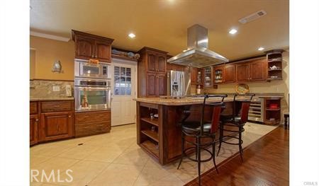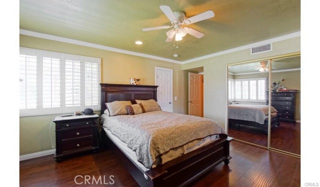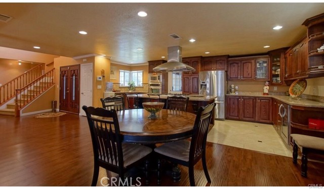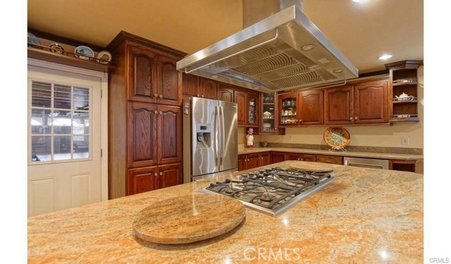 Immerse yourself in this amazing two-story home! Boasting five bedrooms and four bathrooms, three of which feature private en-suite accommodations. The spacious living room is thoughtfully appointed with a fireplace, French doors leading to the inviting backyard, and a cozy family room. The open-concept dining area seamlessly connects to the expansive kitchen, which boasts numerous upgrades, including granite countertops, a wine rack, an island with a built-in cooktop, custom cabinetry, and a built-in microwave. The upper level features the primary private master en-suite, characterized by its high wood ceiling. Additionally, a retreat for relaxation, a walking closet, a jetted tub, a separate shower, and a linen closet provide comfort and convenience. The low-maintenance backyard is complemented by a covered patio and ample space for entertaining with a gas hook-up BBQ. Wood laminate and tile floorings, custom paint, recessed lighting throughout, and additional features contribute to the home’s overall charm and sophistication. The home is conveniently located near freeways, schools, parks, and shopping centers, ensuring easy access to amenities and entertainment options.