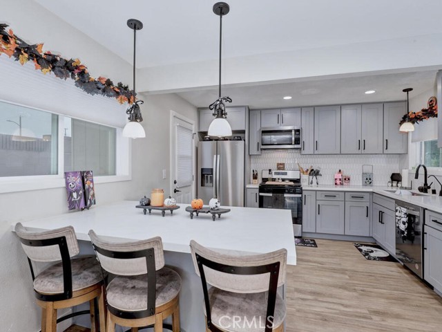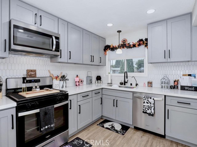 Welcome to this beautifully remodeled 3-bedroom, home office and 2-bath home on a spacious corner lot in the heart of La Habra. Step inside to a bright, open floor plan featuring new high grade vinyl flooring, recessed lighting, and a stunning remodeled kitchen with modern cabinetry, quartz countertops, modern cabinetry, stainless-steel appliances. The bathrooms have also been completely remodeled with special attention to detail. This home also offers new dual-pane windows, sliding glass doors, plumbing, HVAC system, a newer roof, finished detached garage with a power door opener—offering comfort and peace of mind. Enjoy the low maintenance front yard turf with options to add an umbrella or practice golf on the putting green and entertain or relax in the spacious back yard. Great location near schools, parks, great shopping, and lots of dining options, this move-in-ready home combines modern updates with everyday convenience. Don't miss out on this fantastic opportunity!