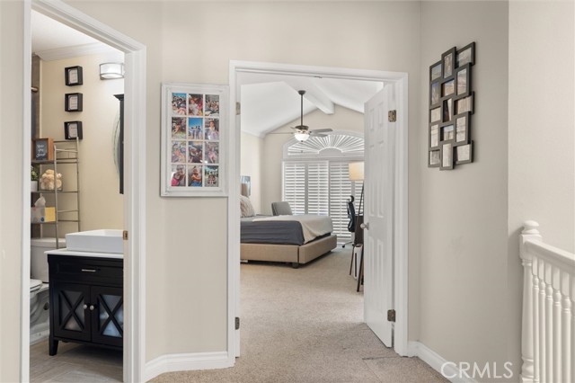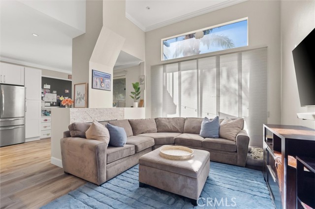 Welcome Home to 124 Via Lampara — beautifully refreshed, bright, and move-in ready! Nestled in the highly sought-after Candelero community of Rancho Santa Margarita, this inviting residence perfectly blends comfort, style, and convenience. With fresh interior paint and brand-new carpet upstairs, the home feels light, clean, and ready for you to move right in. Step through the front door into a soaring, open-concept living space filled with natural light, featuring high ceilings, a cozy fireplace, and elegant finishes that create a warm and welcoming atmosphere. The bright, spacious kitchen is the heart of the home — complete with white cabinetry, stainless steel appliances, quartz countertops, and a large window that floods the space with sunlight. The kitchen opens seamlessly to the dining area and backyard, making indoor-outdoor living effortless. Outside, you’ll find a fantastic entertainer’s backyard—beautifully designed with travertine pavers, mature trees, and plenty of room for gatherings, barbecues, or quiet relaxation under the California sun. This private space truly extends your living area and invites year-round enjoyment. Upstairs, the primary suite offers vaulted ceilings, a private balcony with serene hillside views, and a remodeled en-suite bath with dual vanities and a walk-in closet. Two additional bedrooms are filled with natural light and ideal for family, guests, or a home office. Residents of Candelero enjoy access to SAMLARC’s premier amenities, including multiple pools and spas, parks, playgrounds, tennis courts, and the picturesque Lake Rancho Santa Margarita Beach Club. Outdoor enthusiasts will love the nearby hiking and biking trails that lead all the way to Coto de Caza, as well as Tijeras Creek Golf Club right across the street. Located within the award-winning Capistrano Unified School District, and just minutes from shopping, dining, and the 241 Toll Road, this home offers the perfect balance of tranquility and convenience. Freshly updated, filled with light, and move-in ready — 124 Via Lampara is the perfect place to call home.
