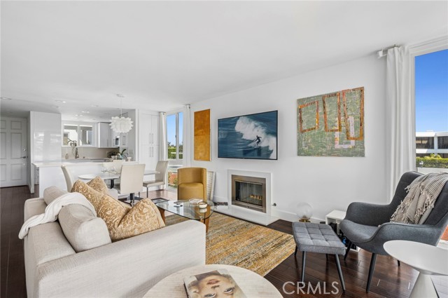 Experience coastal luxury living in this stunning top-floor, end-unit penthouse located in the heart of Corona del Mar! This light and bright 2-bedroom, 2-bathroom residence offers an open-concept floor plan with designer finishes and abundant natural light. The modern kitchen features sleek Bosch appliances and quartz countertops. The spacious living and dining areas flow seamlessly to a private balcony that expands the total living space to over 1100 square feet - perfect for enjoying ocean breezes and vibrant sunsets. The primary suite boasts a beautifully appointed en-suite bathroom and generous closet space, while the secondary bedroom is ideal for guests or a home office. Additional highlights includes in-unit laundry, premium finishes throughout and a detached 2-car garage that is gated and secure. Nestled in a prime location south of the PCH near beaches, up-scale dining and boutique shopping, this penthouse embodies the best of coastal Orange County living.