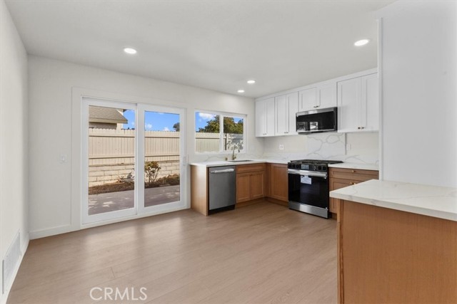 Single-story, DETACHED 2BD/1BA home at the end of a quiet cul-de-sac in Yorba Linda’s desirable Woodgate Community. No shared walls and fully remodeled! Bright open layout with vaulted ceilings, recessed lighting, new dual-pane windows, and laminate wood flooring. Designer open kitchen with quartz countertops and stainless appliances. Updated bathroom with modern finishes. Bedrooms feature walk-in closets. Private low-maintenance patio plus attached 2-car garage. Enjoy community pool, spa, tennis courts, clubhouse & greenbelts. Adjacent to Woodgate Park and close to shopping, dining, and 91/55/57 freeways. Located in award-winning Placentia-Yorba Linda USD. Move-in ready detached home—rare find!