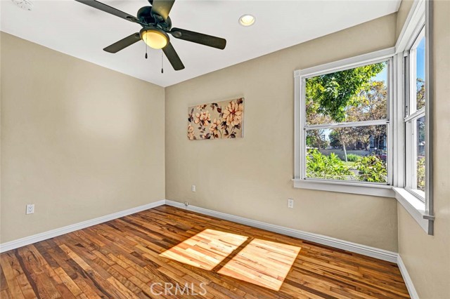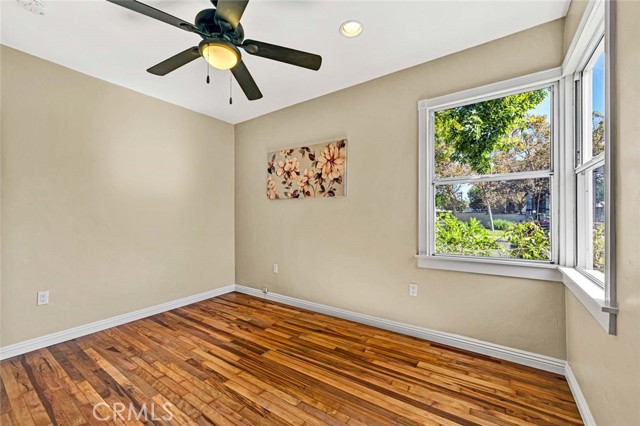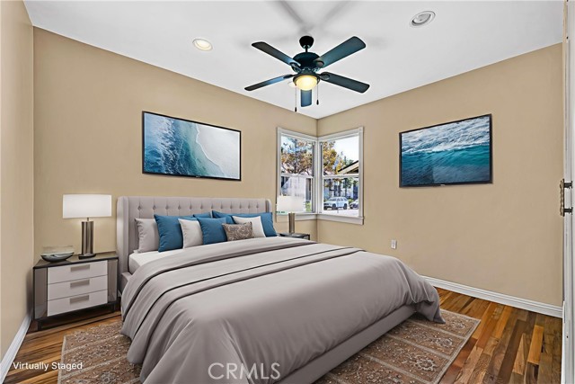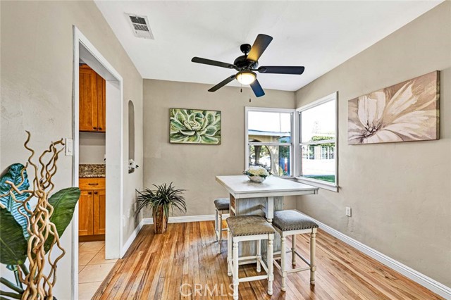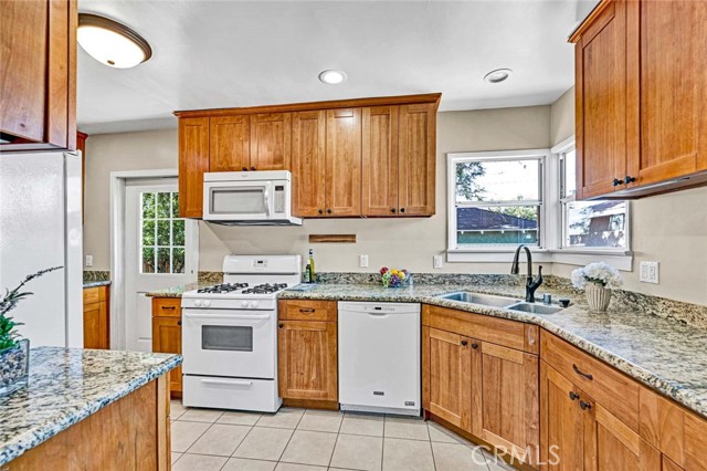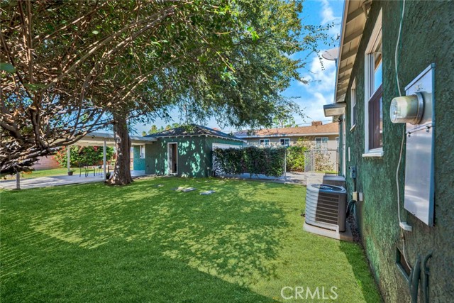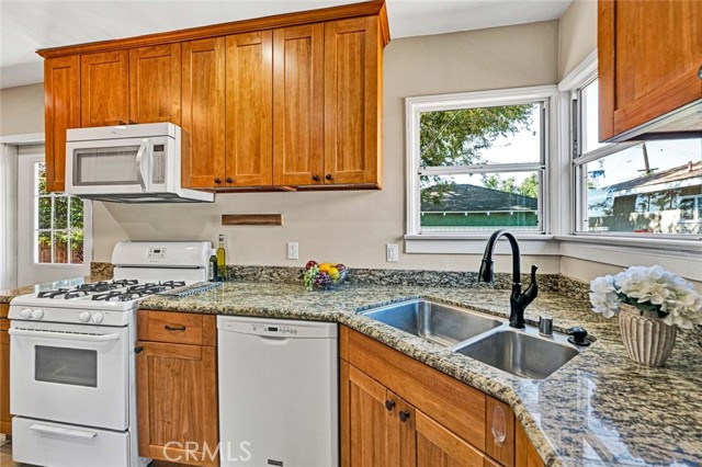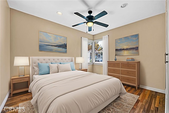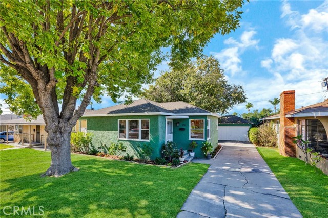 Tucked away at the end of a quiet cul-de-sac,this beautifully remodeled single-family home delivers everything hard-working buyers dream of — space, comfort,privacy,and the freedom to make it their own.From the moment you arrive,you’ll feel the pride of ownership —a freshly painted exterior,lush green lawn,brick planters blooming w/ flowers & a gorgeous front door that says welcome home.Step inside to the freshly painted light,bright open floorplan w/ exquisite hardwood flooring,recessed lighting & extra-tall baseboards throughout.The large dining area,surrounded by windows,is perfect for family dinners or weekend gatherings.The remodeled kitchen is a showpiece — featuring rich hardwood cabinetry,granite counters & backsplash,newer stainless sink,matching appliances incl. Frigidaire range,Whirlpool microwave,Kenmore Elite refrigerator,and Maytag dishwasher.A HUGE amount of extra cabinet space and abundant counter space make it both functional and beautiful.The fully upgraded bathroom feels like a private spa —granite dual-sink vanity,designer tile shower over tub w/ glass door,modern lighting & newer fixtures.Both bedrooms are generously sized w/recessed lighting,lighted ceiling fans,deep closets & built-ins for extra storage.The newer HVAC system,copper plumbing,updated electrical panel & wiring & dual-pane vinyl windows provide peace of mind for years to come.Step outside & you’ll discover what truly sets this property apart — a massive backyard w/ mature shade trees that help keep energy bills low & an extra-large covered patio perfect for BBQs,TV game days & family celebrations.There’s even gas hookup & a TV mount ready to go!For anyone dreaming of additional income or multigenerational living,this backyard is ADU-ready — w/ ample space & a separate gated entrance.Car enthusiasts or tradesmen will love the 3-car tandem detached garage,complete w/ dual pull up doors (front & back),w/finished interior,Samsung washer & Whirlpool dryer, and even a pull-through rear garage door for backyard access.The extra-long driveway offers parking for work trucks,trailers, or guests.From top to bottom,this home is move-in ready w/newer sewer piping,water heater,rain gutters & newer fencing —all in a private,family-friendly location.Whether you’re a first-time buyer or someone looking for more space & independence,this home is a rare find —a place where you can build, grow, & truly belong. Come see it for yourself and picture the next chapter of your life starting here.