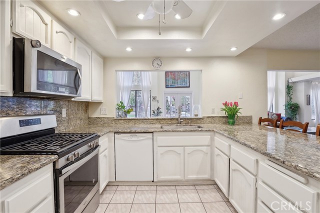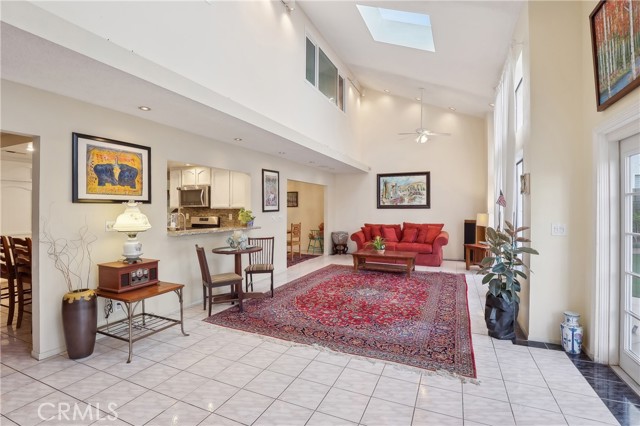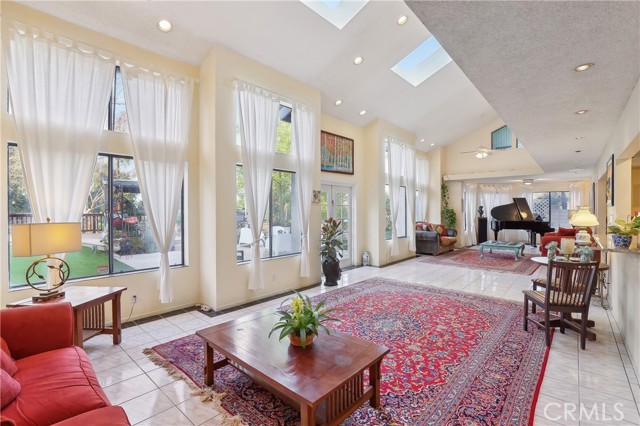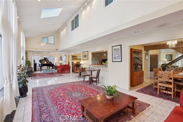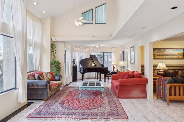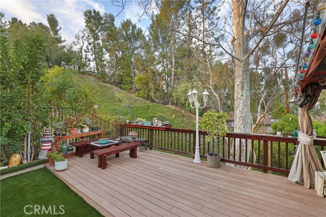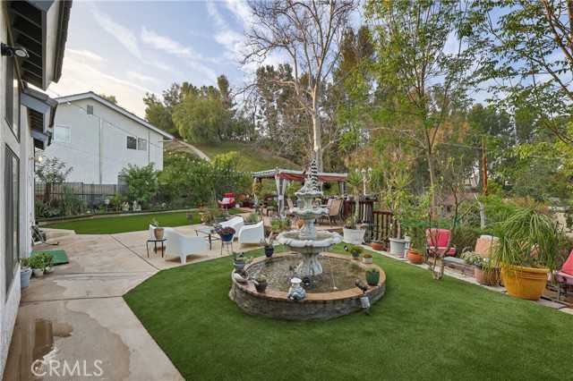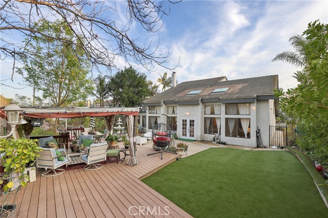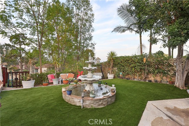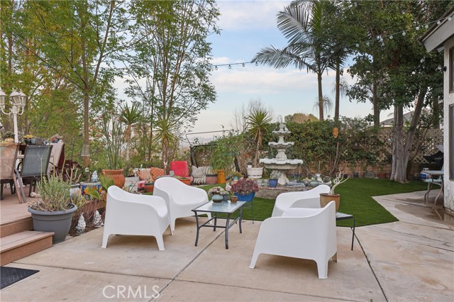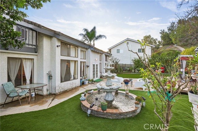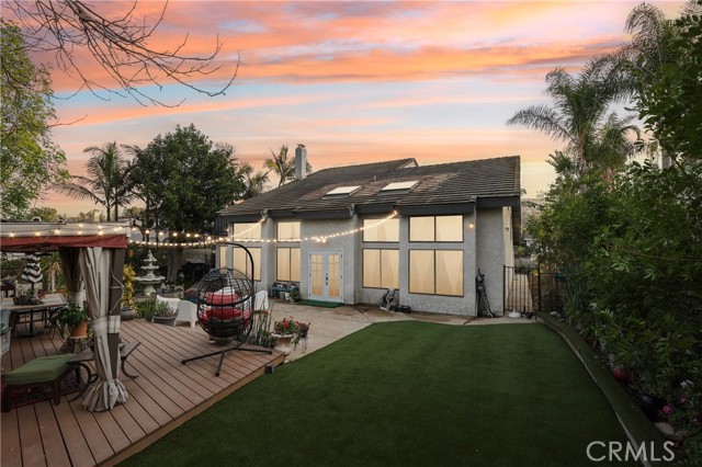 Stunning 5 bedroom property, once a model home, is located in a quiet cul-de-sac within one of Anaheim Hills' most prestigious neighborhoods, offering breathtaking mountain and tree views. You'll be welcomed by a private driveway leading to the 3-car garage. Step through the double doors and into an inviting, spacious floor plan flooded with natural light. The home features recessed lighting, soaring two-story ceilings, and an abundance of windows and skylights, creating a bright and airy atmosphere throughout. The kitchen boasts elegant granite countertops, white cabinetry, stainless steel appliances, and a large eat-in bar perfect for casual dining. This space opens seamlessly into the cozy family room, complete with a charming fireplace. There is also a formal dining room, perfect for entertaining. The home has been upgraded with dual-pane windows, stylish wood flooring upstairs, and easy-to-maintain tile flooring downstairs. A recent professional addition enhances the home's living space, featuring a spacious upstairs balcony with panoramic views that are perfect for enjoying sunsets. Downstairs features an expansive entertainment room, 1 bedroom with large closet and 1 full bath. The luxurious primary suite offers a true retreat, with an ensuite bathroom. Outside into the backyard, you'll find an entertainer’s paradise with a large patio, surrounded by mature trees offering seclusion. Enjoy the convenience of artificial grass, a raised wood deck area with gazebo, and a tranquil fountain, making this a serene outdoor oasis. Additional features include a 3-car garage with ample storage cabinets. The home is centrally located with easy access to top-rated schools, shopping centers, fitness clubs, Imperial Park and Pelanconi Park, a 27-acre park with beautiful trails and streams. Plus, the 91 freeway is just moments away, providing quick and easy transportation. Low HOA fees, come see it today!