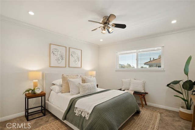 Located in a quiet, gated community in popular South Coast Metro, 3636 Main St is an upgraded 2 bed 2 bath end unit with a large 1 car garage. This move-in ready condo has the perfect flow starting with the front deck, moving into the open floorplan in the main living space and two oversized bedrooms with access to a private back patio. Large upgraded windows and sliders let in tons of natural light to the living room and kitchen while keeping the space private and quiet, BUT you can always enjoy central A/C! The kitchen has been opened up so it flows into the living room and was tastefully upgraded with high-end finishes, marble countertops, and stainless steel appliances. You and your guests can enjoy dining at the large island or in the dining space conveniently located off the kitchen next to the slider that opens to your private deck. The main living has been upgraded with modern laminate floors, custom lighting, and ceiling fan. Down the hall you’ll find a large storage closet perfect for linens or an additional pantry. The hall bathroom has had a full upgrade with custom tile work around the tub and shower. The large vanity and cabinets add so much storage and convenience to the space. Both large bedrooms are carpeted and have been upgraded with recessed lighting and ceiling fans. The primary suite includes a walk-in closet and a large ensuite that is ready for you to personalize it. This unit includes an extra deep 1 car garage which has washer and dryer hookups inside as well as 1 additional parking permit, so 2 dedicated parking spots total. The community has wonderful greenspaces all maintained by the HOA as well as a pool and spa just a short walk from the unit. Come make this turnkey condo your new home!