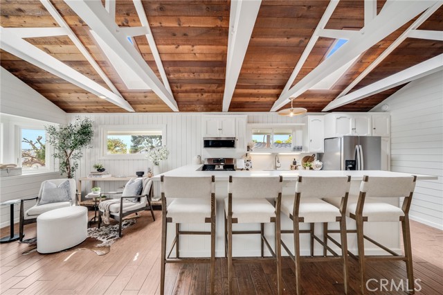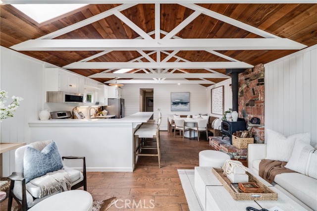 Welcome to 358 Flora Street, a charming cottage in the heart of Laguna Beach’s coveted Woods Cove neighborhood. This well maintained 1,600 sq. ft. residence blends classic coastal character with warm, relaxed living spaces—all just moments from two of Laguna’s most beloved beaches: Woods Cove and Bluebird Canyon Beach. Step inside to a cozy yet spacious living room, highlighted by a vaulted tongue-and-groove ceiling with classic exposed trusses that elevate the room’s charm and coastal character. A wood-burning Franklin-style stove serves as a welcoming focal point, lending warmth and ambiance throughout the main living area. The kitchen is a true hub, featuring a generous peninsula that makes entertaining effortless and everyday living a breeze. A full dining nook is set up close to the kitchen and comfortably seats eight and enjoys the gentle heat from the stove, creating a warm, connected space ideal for gatherings. The home has 4 bedrooms, and two bathrooms, with the primary suite privately situated upstairs. The three additional bedrooms on the lower level provide flexible options for family, guests, or office space. Out front, a bright and open patio invites lounging and outdoor entertaining in a serene coastal setting. The property also includes a rare two-car garage with unique alley access—a highly desirable convenience in this beachside community. With restaurants, boutiques, and shoreline paths all within close reach, this delightful cottage captures the best of Laguna Beach living: charm, comfort, and effortless coastal lifestyle.
