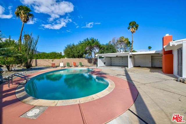 Trust Sale. No Court Confirmation Required. For sale after 44 years! Tastefully upgraded 3-bedroom 2 bath mid-century "Alexander" home located in highly desirable Racquet Club Estates neighborhood of Palm Springs, offering wonderful San Jacinto views. Approximately 1,225 sq ft living space on 10,018 sq. ft lot size. The home has been extensively renovated to blend modern comfort with timeless style. The spacious open concept living area features completely remodeled kitchen with all new glass top designer cabinets, luxury quartz counter-top, brand new stainless steel appliances, new luxury vinyl plank flooring throughout, remodeled hallway bathroom with new tub, shower tiles, vanity, toilet, and all new fixtures, fresh interior paint, new interior doors, new mirrored closet doors, and all new fixtures. Large windows provide abundant natural light throughout the home. A wood-burning gas fireplace creates a warm focal point in the living room, making the space ideal for everyday comfort and gatherings. The master bedroom is spacious with dual closets, and direct access to the backyard. Two additional bedrooms with ample closet spaces, and the remodeled hallway bath, offers convenient living spaces for the family. Private backyard with a refreshing swimming pool, desert landscaping, solar powered exterior lights, lounge chairs, make it an ideal space for relaxation and entertainment. The central heating and air conditioning, and the cool roof with reflective coating, make this home enjoyable for any season. Attached 2-car garage, additional outdoor space with dedicated laundry area, storage, and work area room add additional features to the home. Desert landscaping with drip irrigation, new exterior lighting in both the front and back, and mature olive trees all come together to make this home ideal for effortless outdoor living. Situated just minutes from the heart of downtown Palm Springs, Victoria Park, world-class dining, boutique shopping, art galleries, nightlife, and the iconic Palm Canyon Dr. Sold AS IS and WHERE IS, with all faults, and without warranty, express or implied. Buyer to conduct their own investigations and assume all responsibilities. Seller is a Successor Trustee, unrelated to the property owner, and cannot make any representations as to the condition or history of the subject property.