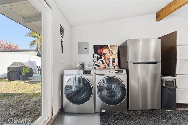 Welcome to 700 Hamilton Street, a thoughtfully remodeled Mid-Century modern home in the heart of Costa Mesa’s beloved Westside. Nearly every inch has been updated with high-end finishes and stylish touches—from the fresh exterior paint and brand-new roof on both the house and garage, to fully replaced electrical throughout and a finished garage offering future potential as an ADU, studio, gym, or bonus living space. Inside, the home balances warmth and clean design with exposed and newly stained wooden beams, custom shutters, recessed lighting, and new French doors off the living room that fill the space with natural light. The remodeled kitchen showcases modern tilework, elevated finishes, and a custom built-in banquette with hidden storage—perfect for everyday living. Both bathrooms have been reimagined with updated tile, quality fixtures, and curated wallpaper, while the guest rooms have been refreshed with a clean, move-in-ready feel. The home sits on a generous lot with a large front and backyard, offering mature lime and avocado trees and plenty of room to relax, garden, or entertain. Whether hosting friends, enjoying the sunshine, or dreaming up future outdoor projects, the space is ready for it all. And the location is truly ideal: stroll to Neat Coffee, MoonGoat, and nearby restaurants, or hop on the adjacent bike trail straight to the beach. Fairview Park, Talbert Park, and countless outdoor activities are all just minutes away. 700 Hamilton blends thoughtful upgrades, modern style, and a lifestyle rooted in convenience, community, and coastal living—all surrounded by genuinely great neighbors.