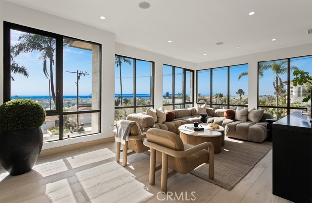 Perched above the coastline, 1210 Kings Road commands unobstructed views of Catalina Island, the Pacific Ocean, and Newport Harbor, presenting a rare blend of timeless architecture, modern luxury, and effortless coastal living. Thoughtfully designed and meticulously crafted, the home spans approximately 6,400 square feet of refined living space. A private elevator serves all levels of the residence, enhancing convenience and accessibility throughout. Beyond the grand entry—with its soaring ceilings, abundant natural light, and sweeping sightlines—the open floor plan unfolds into spaces tailored for both intimate living and unforgettable entertaining. The main level features a chef’s kitchen with dual top-of-the-line appliances, a generous center island, and an architectural wine wall. The adjoining formal dining room sets the stage for everything from quiet dinners to celebratory gatherings. Upstairs, the living room is framed by floor-to-ceiling windows that capture the panoramic views in every direction. A separate family room offers an additional retreat, complete with a full bar—ideal for relaxed evenings or hosting guests. The serene primary suite enjoys unmatched views across the water and includes a luxurious spa-inspired bath with a soaking tub, dual vanities, and a spacious walk-in closet. Four additional en-suite bedrooms provide exceptional accommodations for family and guests. Outside, the estate’s expansive grounds are designed for year-round enjoyment. A sparkling pool and spa anchor the outdoor living space, complemented by a large patio perfect for dining al fresco or entertaining under the coastal sky. The rooftop deck, complete with a fireplace, offers a private vantage point for taking in the ocean breezes, sunsets, and city lights. Ideally situated on coveted Kings Road—just moments from world-class shopping, dining, beaches, and the best of Newport’s coastal lifestyle—1210 Kings Road presents an unparalleled opportunity to own a landmark property in one of Southern California’s most sought-after enclaves.