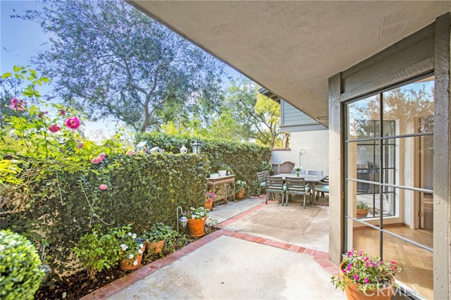 Gorgeous townhome in the sought after community of prestigious Rancho San Joaquin in Irvine. This stunning home will take your breath away! Pretty travertine courtyard entry with stunning custom front door, OPEN FLOOR PLAN, real hard wood floors, soaring ceilings, glass railings, windows galore that let the sunshine pour in, balcony across the entire back side with a wide open view of Mason Park! Beautiful kitchen remodel with spectacular black absolute granite counters, high-end cabinetry and Thermadore appliances, built in refrigerator, walk in pantry, pendent & recessed lighting, high ceilings. Pull up a barstool for casual dining at kitchen counter or move into the sunny open dining room. The spacious living room features a beautiful fireplace with the perfect mantel for holiday decor and gorgeous black granite hearth. You will love the impressive floor to ceiling custom built-in bookshelves in the step-down den complete with rolling wood and brass library ladder. Downstairs you're greeted by lovely bay windows and door leading to enclosed patio, perfect for family barbecues or morning coffee. The spacious primary bedroom also looks out onto the sunny private patio. The primary bath has a brand new beautiful double vanity and new walk-in shower with modern sliding glass doors. There is a walk in closet, builtin cabinets and storage. The second bedroom has pretty french doors to patio and a gorgeous remodeled bathroom with built-in cabinetry & luxurious Walker & Zanger handmade tile shower with built-in seat. New HVAC and new roof. There is a direct access attached garage with private driveway, as well as a carport and second driveway, for a total of four parking spaces. And since you're going to be doing so much entertaining in your fabulous new home there is also guest parking at the end of the cul-de-sac turnabout. The HOA dues include water, trash, greenbelt maintenance and front yard landscaping. There are 2 resort-style pools and spas for your enjoyment. BONUS if you drive electric... For your convenience there is a Level 2 EV charging station available in the community, exclusively for residents. Walking distance to the Racquet Club of Irvine, Rancho San Joaquin Golf Course & "The Terrace" restaurant, University High, UCI, shopping centers, dining and entertainment. Close to beaches, back bay, hiking and biking trails, medical, John Wayne Airport, Disneyland etc. NO Mellow Roos. PROPERTY IS LOCATED IN AWARD WINNING IRVINE UNIFIED SCHOOL DISTRICT.