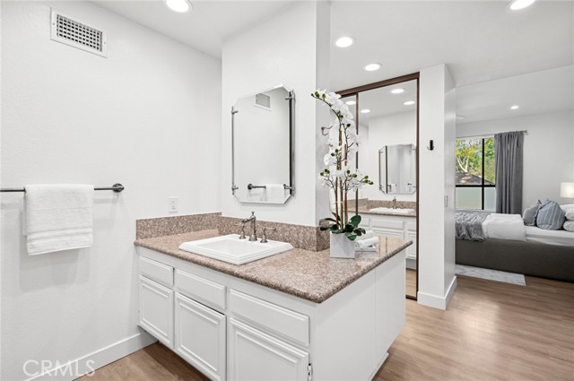 Newly updated single-level home with no interior steps in the heart of Turtle Rock. This large two-bedroom, two-bath residence offers a spacious, open living plan with a combined living and dining room, plus an adjacent den or office that could be converted to a third bedroom. The living area opens to a generous stone patio enclosed by a wooden fence, complete with an additional storage closet. Both the primary and secondary bedrooms are oversized with their own baths, and the home also includes an inside laundry area. The kitchen features a garden window with excellent sun exposure from two sides and space for a breakfast table. Recent updates include new flooring, ceiling lights and fans, window treatments, an updated fireplace, and central air conditioning. The interior and the oversized two-car garage have just been painted, and the garage features new epoxy flooring and ample built-in storage. Set in a private, park-like location on the greenbelt, the home enjoys views of lush trees and is a short distance from the community spa, pool, and nearby amenities such as tennis and basketball courts, Turtle Rock Community Park, and Bomber Canyon trails. It also offers convenient proximity to UCI, shopping centers, John Wayne Airport, and Irvine’s award-winning schools—including zoning for University High School, ranked in the top 5% of all California public high schools and widely regarded as one of the best in Irvine and Orange County.