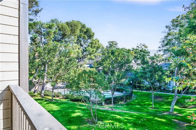 EXPANSIVE VIEWS OF POOL AND SPA, LARGE GREENBELT AND TREES FROM CUL-DE-SAC CORNER LOT IN INTERIOR OF COMMUNITY! AS-IS fixer-upper priced to sell, lowest price in community, so you can do the upgrades you want. This middle-unit condo has only three steps up to the front door with inside living area all on one level, and a 2-car detached garage right in front with additional storage space. Bright home with open floorplan, high ceilings, lots of large windows, indoor laundry, and three outdoor decks with views of all the greenery! Den off Living Room can be converted to a third bedroom or used as an office. Kitchen is open to Dining Room with sliding glass door to an outdoor deck and Dining Room is open to Living Room with fireplace and sliding glass door to separate outdoor deck with views of pool and greenbelt. Down the Hall is the Front Bedroom and Hall Bathroom, and at the end of the Hall is the Primary Bedroom and Primary Bathroom which has Vanity area with double sinks that is separate from shower room. The Primary Bedroom has sliding glass door to its own outdoor deck overlooking the pool. New roof and tenting completed Spring 2023. Residents enjoy access to two community pools and spas, with association dues covering water, trash, and exterior maintenance. Ideally located in the esteemed Irvine School District, including University High, and just minutes from UCI, William Mason Park, John Wayne Airport, Newport Beach, and Fashion Island. This home will go fast!