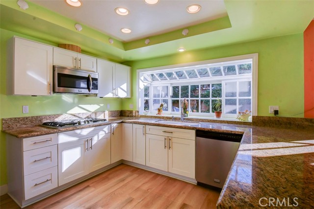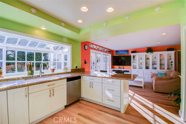 Discover an incredible opportunity to own a beautifully maintained home in one of the area's most sought-after neighborhoods. Nestled on an interior tract location, this popular floorplan welcomes you with double doors opening into a bright formal living room featuring cathedral ceilings and dual skylights. A charming brick fireplace anchors the sunken conversation area, which flows seamlessly into the dining room with French doors leading to the backyard, filling the space with natural light. The remodeled kitchen (approx. 2 years new) offers fresh cabinetry with pull-out drawers, a corner lazy Susan, granite countertops, under cabinet lighting and a full suite of stainless steel appliances: double oven, dishwasher, gas range, built-in microwave and refrigerator. A peninsula counter with bar seating, large bay window and oversized walk-in pantry make this kitchen both functional and inviting. It opens directly to the family room, complete with built-ins, a wet bar and another set of French double doors to the backyard. One of the most desirable features of this layout is the downstairs bedroom with an adjacent 3/4 bath- ideal for guests or multi-generational living. An interior laundry room with cabinetry provides direct access to the 3 car garage. Upstairs, the generous primary suite features a large bay window, en-suite with double sinks, walk-in closet and separate tub and shower. Two additional bedrooms and an additional full bath sit nearby, along with an expansive bonus room offering large windows and built-ins - perfect as a home office, media room, game room or potential extra bedrooms. The south facing backyard offers wonderful sunlight and includes a spa with a newly installed heater, gas firepit and fruit trees. Additional highlights include plumbed for A/C and a gas line for a bbq. This exceptional home combines, space, comfort and flexibility - ready for you to make it your own! Walking or biking distance to both Newland Elementary and Talbert Middle School. Close to grocery stores, restaurants and the freeway. Walking distance to neighborhood park!