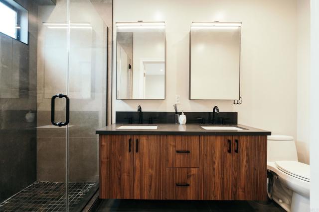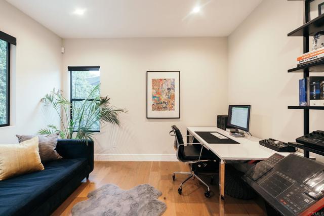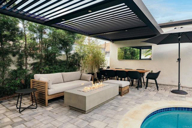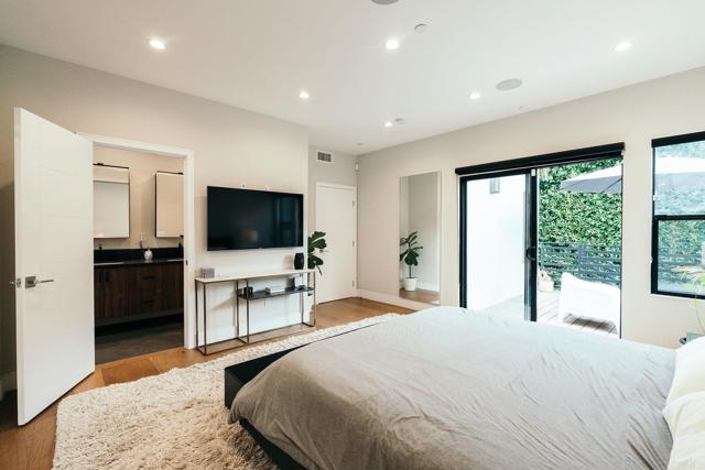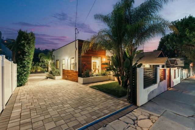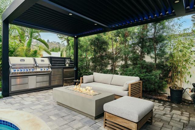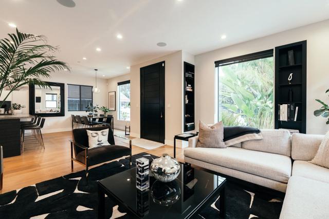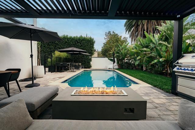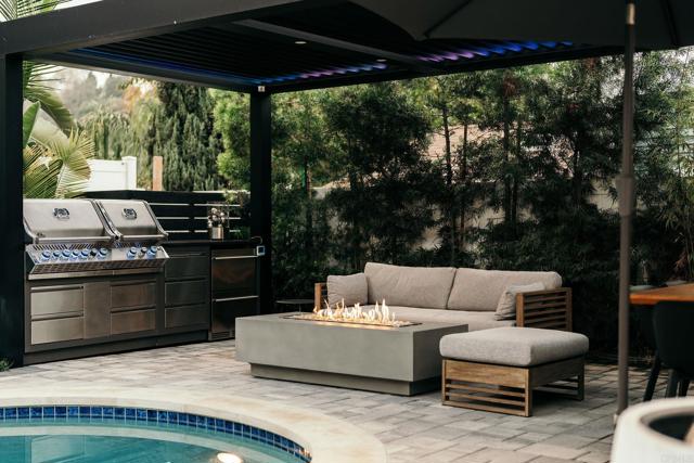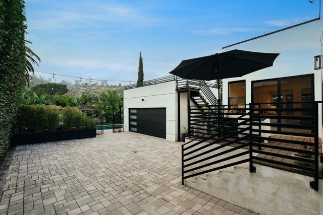Welcome to this custom newer-built modern residence, a thoughtfully designed single-story home with pool that blends architectural style with elevated comfort. Behind the sleek façade, and fully gated with a motorized front gate, the home features along private driveway that provides an abundance of parking—an exceptional convenience rarely found in homes of this caliber. Inside, wide-plank wood floors, oversized windows, and a refined mix of black, white, and natural finishes create a warm yet upscale atmosphere throughout.At the center of the home, the chef’s kitchen showcases a 36" Bertazzoni 5-burner gas stove, built-in monogram refrigerator, quartz countertops, high-gloss cabinetry, a walk-in pantry, and a built-in wine rack. The open living and dining areas connect seamlessly, enhanced by recessed Bluetooth speakers that fill the space with sound and elevate both entertaining and everyday living.The primary suite offers a serene retreat with a custom-built out closet and a beautifully appointed bathroom, featuring a dual vanity and oversized walk-in shower clad in modern tilework. Additional bedrooms are generously sized and well positioned for comfort and privacy. Designed for resort-like living, the backyard features a sparkling salt water heated pool with all newer equipment, surrounded by lush tropical landscaping for total privacy. The outdoor space features, lounge area, space for your bbq, a custom louvered pergola with built-in lighting and a linear fire feature create the perfect setting for year-round enjoyment. Completing the property is a rooftop deck above the detached garage, offering peaceful hillside views and another relaxing space to unwind.With its refined finishes, Unify camera system, modern amenities, and thoughtful single-level design, this home delivers a truly elevated living experience. Schedule a private viewing today.