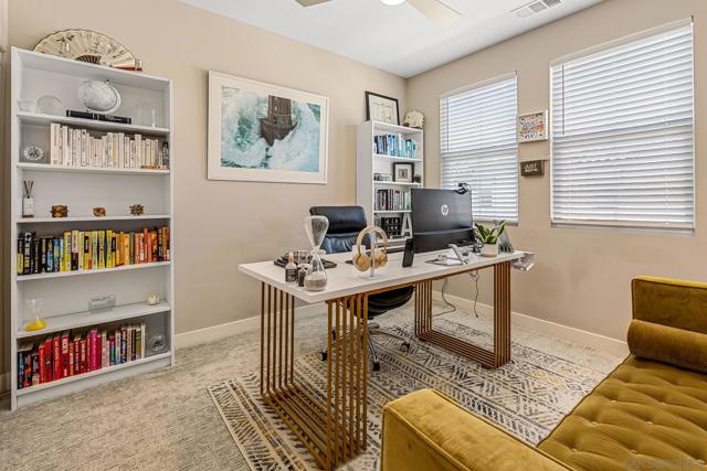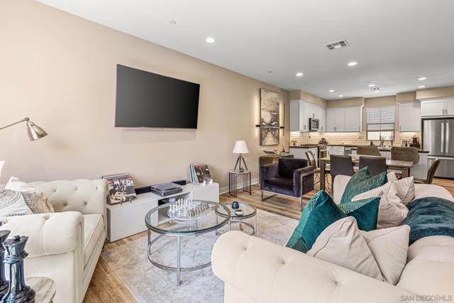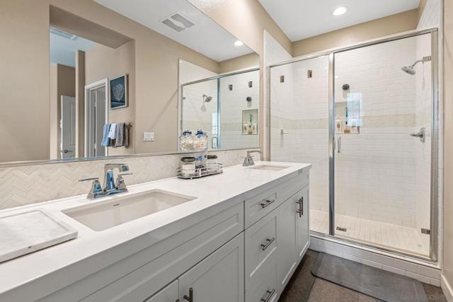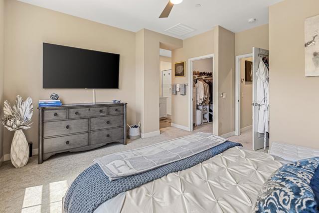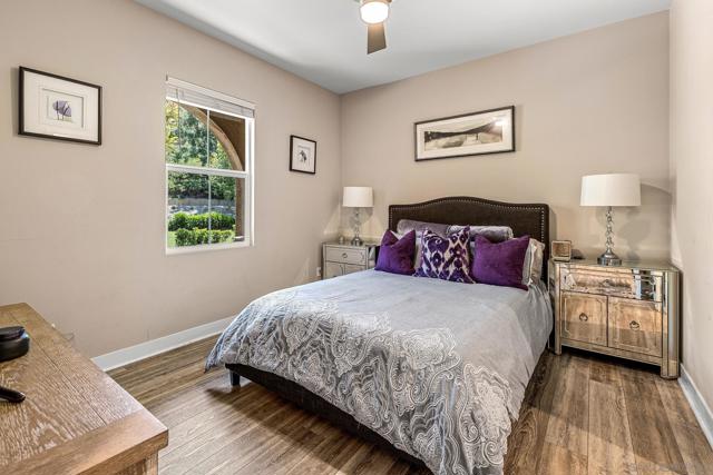 Step into this stunning, highly updated home in the gated community of St. Cloud. This residence is a true charmer, with a functional and efficient layout perfect for modern living. The bright and open great room is an entertainer's dream, flowing seamlessly from the kitchen. The kitchen is a chef's delight, featuring stainless steel appliances, abundant counter and cabinet space, and an island with bar seating. Relax and enjoy the serene greenbelt views from the great room or step out onto the adjacent, spacious balcony to take in the scenery. Upstairs, the primary suite is a private retreat. The en suite bathroom boasts a custom-tiled shower, a private water closet, a walk-in closet with organizers, and a double vanity with "his and hers" sinks. A second bedroom with its own en suite bathroom is also located on this level. The entry level provides a versatile space with a bedroom and a full bathroom, ideal for a private office, guest quarters, or multi-generational living. The home also includes a convenient laundry room on the main living level. The two-car garage offers plenty of space for vehicles and extra storage. Living in St. Cloud means enjoying a resort-like lifestyle, with amenities including a large pool and spa, a barbecue area, a gym, a playground, and a basketball court. Much of the furniture in this home is also available for purchase, making this a truly turn-key opportunity.