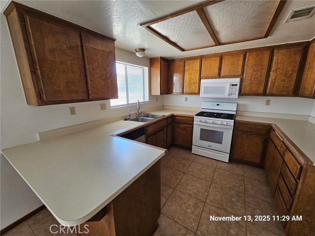 Your home sweet home is calling! Will you answer the call! Super clean, inside & out, well maintained home. The fully level lot is clean, clean clean! Fenced back yard has plenty of room for ADU, pool, workshop, anything you might think you need. There is a covered front porch at entry. Walk into a spacious living room with real brick fireplace & extended hearth. Functional kitchen has all of the cabinets & counter space you need & includes a built in microwave. 3 decent sized bedrooms & 2 full baths complete the picture.The hall bathroom has a solar light for additional lighting. Nice linen cabinet storage in the hallway. The 2 secondary bedrooms have built in shelves in the closet. Carpet is recently cleaned. There is an oversized attached, finished 2 car garage that has a small bonus area that could serve for a workbench, extra storage, etc. Newer water heater & laundry hookups in the garage. Covered back patio is ideal for your future BBQ's & gatherings. You will not need to do anything to start enjoying living in this sparkling home. Run, don't walk & check it out today!