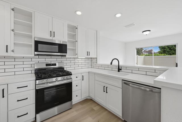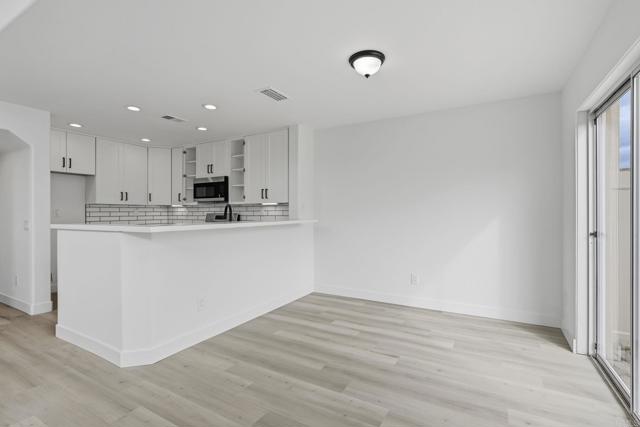 Discover the perfect blend of modern style and comfort in this beautifully updated twinhome, ideally situated on a premium corner lot. From the moment you step inside, soaring ceilings and an abundance of natural light create a bright, airy atmosphere that instantly feels like home. The spacious living room features dramatic two-story windows, fresh designer finishes, and a cozy fireplace that anchors the space with warmth and charm. Newly installed luxury vinyl plank flooring flows throughout the main level, enhancing the home’s clean, contemporary aesthetic. The stunning remodeled kitchen is designed to impress, offering white shaker cabinetry, sleek matte-black hardware, quartz countertops, subway tile backsplash, and stainless steel appliances. Its open layout connects effortlessly to the dining area and living room, making it ideal for both entertaining and everyday living. A sliding glass door leads to the private, low-maintenance patio—perfect for morning coffee, outdoor dining, or simply unwinding in your own outdoor space. Upstairs, the bright landing overlooks the living area below and leads to the home’s well-appointed bedrooms. Each bedroom offers new flooring, generous closet space, plantation shutters, and plenty of natural light. The expansive primary suite is especially inviting, featuring a wall of mirrored closets, oversized windows, and clerestory windows that create an open, serene ambiance. The updated primary bathroom offers a double-sink vanity, modern fixtures, and a large walk-in shower with built-in seating. Both bathrooms throughout the home have been thoughtfully refreshed with contemporary finishes including quartz or marble-style countertops, updated lighting, and sleek matte-black faucets. Additional conveniences include a spacious laundry room with storage and an attached two-car garage with direct access and a clean, freshly painted interior. With its fresh, modern upgrades, abundant natural light, open layout, and highly desirable corner location, this move-in-ready home offers exceptional style and comfort in one complete package. It’s a rare opportunity to own a beautifully remodeled property that truly feels brand new.
