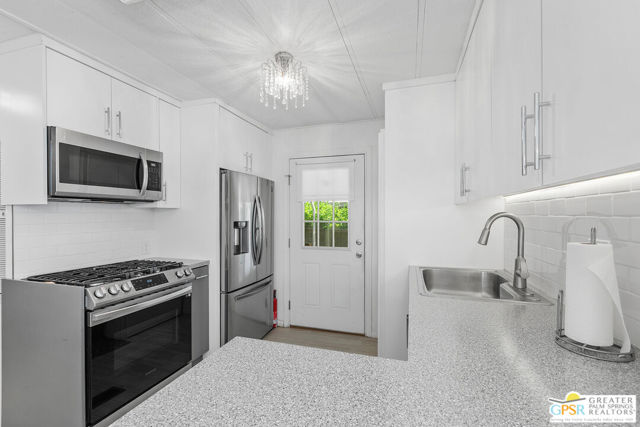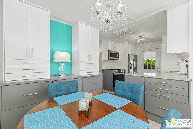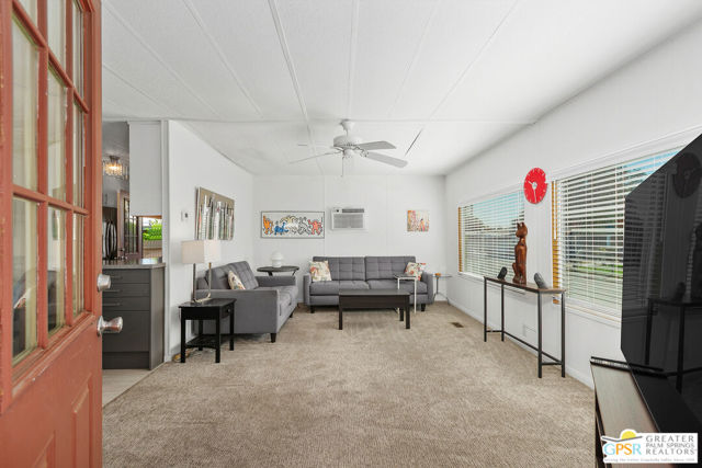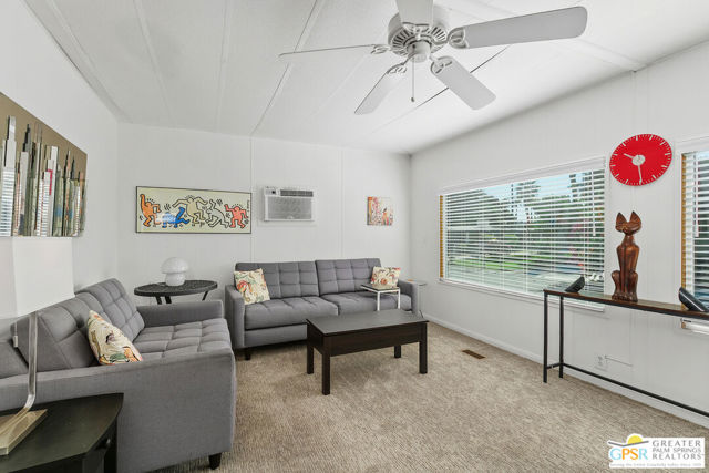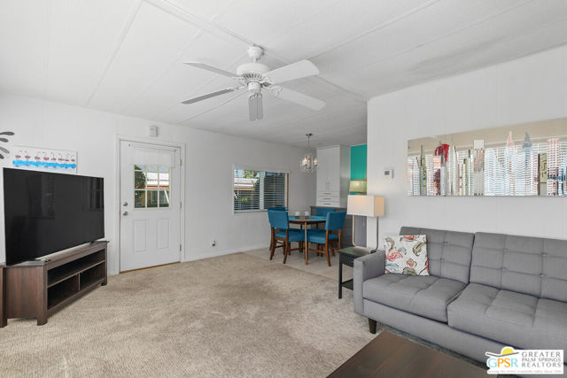 This charming desert bungalow offers a well laid out floorplan in a petite footprint. Featuring two bedrooms, two baths in a friendly and neighborly community, this is a perfect pied-a-terre or a full time pad in paradise. Offered furnished if needed, this home has some updates in the kitchen and living areas and a charming side deck with heavenly mountain views. Convenient to the south community pool and dog park, enjoy cul-de-sac living convenient to shopping and dining in the south end of Palm Springs. This community offers a 55+ experience with an active clubhouse, mini gym, pools, greenbelts and shuffleboard. Space rent is $695.99/month, and Buyer must have park approval in order to close escrow. Income Verification of 3.5 times space rent. Buyer to verify lease terms and park rules/regulations. Space rent is currently 696/month.
