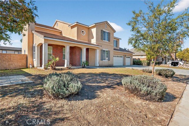 This spacious 5-bedroom, 4.5-bath home offers 3,570 sq ft of comfortable living on a generous 10,019 sq ft lot. The main level features formal living and dining rooms, a large family room with a cozy fireplace, and an open kitchen with quartz countertops, a center island, abundant cabinetry, and a walk-in pantry. A downstairs bedroom with an en-suite bath and a separate guest powder room add convenience and flexibility. Upstairs, the primary suite includes a walk-in closet, dual vanities, a soaking tub, and a separate shower. Three additional bedrooms, two full bathrooms, an upstairs laundry room, and a versatile loft—perfect as a game room, office, or additional living area—complete the second floor. The backyard offers ample space for entertaining or future outdoor improvements. Additional features include dual HVAC systems and energy-efficient windows. Located near shopping, dining, parks, and freeway access, this home provides exceptional space and comfort with room to make it your own.
