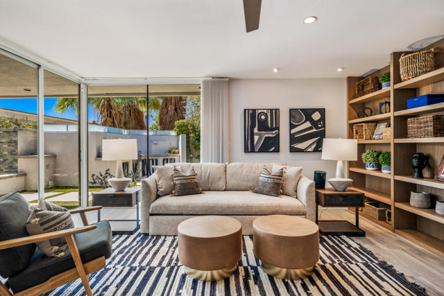 New co-ownership opportunity: Own one-eighth of this turnkey home, professionally managed by Pacaso. This stunning 4-bedroom, 5-bath home lies in the heart of Palm Springs' Historic Tennis Club neighborhood. The sophisticated single-level home offers stunning views of the San Jacinto Mountains and expansive entertaining spaces inside and out. Vast and vaulted, the bright great room features a wall of windows with unobstructed views to the private outdoor space with a distinctive focal point: a sparkling lap pool with six arcing fountains and a spa. The great room also features a striking free-standing fireplace with round stainless steel hood. The sleek look continues in the kitchen with stainless appliances, modern cabinetry, a massive island and a wall that opens to a covered patio space for dining and relaxing. The home has four sleek bedroom suites, ensuring there's plenty of space for everyone to have their own private oasis. Solar panels on the roof are perfect for sunny Palm Spring days. In addition to being next to the Tennis Club, this property is close to hiking trails and downtown Palm Springs. The home comes fully furnished and professionally decorated.