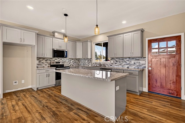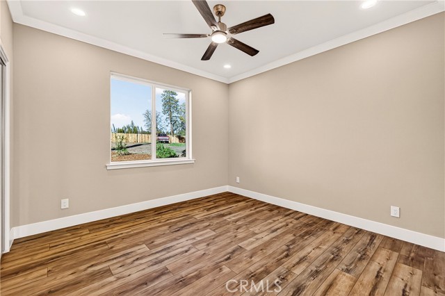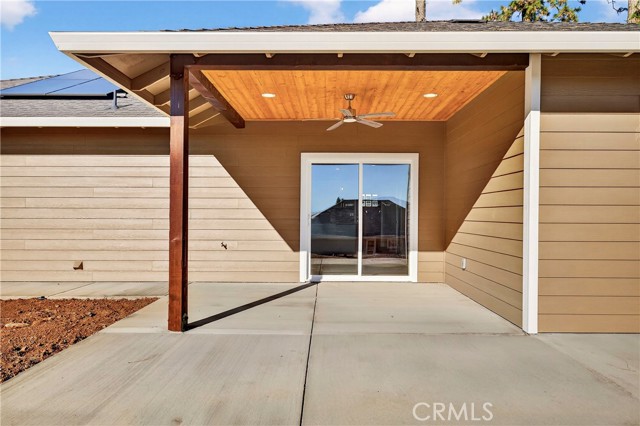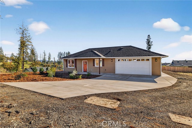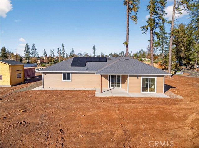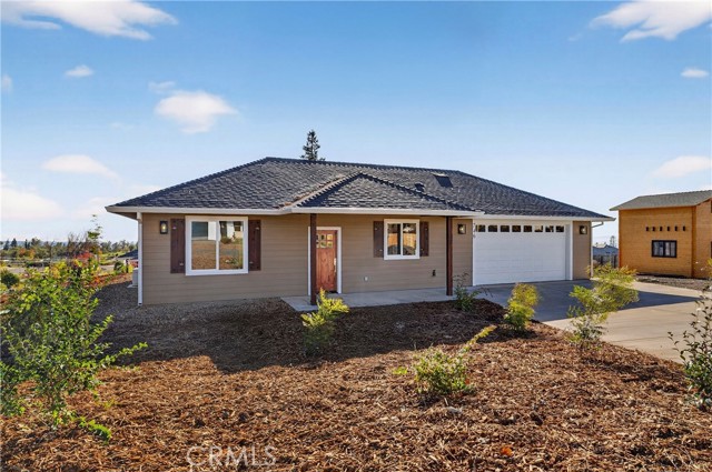 Fantastic Central Paradise location for this 2025 Custom Home, built by Frost Construction a long time Paradise builder. The home offers Owned Solar 3.08 KW system, 7 panels with microinverters. The .32 Acre lot offers space for Boat, Trailer or R.V. parking with electricity. Landscaped front yard on drip system. Boasting a generous 1,021 square feet of living space, this home features top-notch craftsmanship and modern amenities. Upon entering, you'll be greeted by a charming 96 square foot covered front porch with a craftsman-style front door and custom shutters. Step inside to discover an open floor plan that seamlessly connects the living room, kitchen, and dining area. The kitchen is a chef's dream with granite countertops, stainless steel appliances, recessed LED and pendant lighting, and a stylish island for added convenience. The primary bedroom is a serene retreat with crown molding, a slider leading to the covered patio, and a well-appointed en-suite bathroom featuring granite counters and a step-in shower. The guest bedroom also offers crown molding and access to a sleek guest bathroom with granite countertops and a tub/shower combination. The home features gorgeous Vinyl Plank flooring throughout. Outside, you'll find a spacious 114 square foot covered patio with recessed lighting and a ceiling fan, perfect for outdoor entertaining. Additionally, the oversized two-car garage, measuring 23'5" wide by 25'10" deep, includes a laundry area. Plenty of space for a boat, trailer, or RV parking. R.V. electric hook-ups. Don't miss out on the opportunity to call this beautiful home yours!