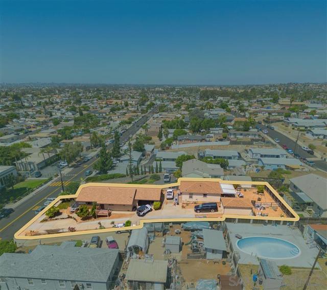 Two detached homes on a 12,569 SF lot with strong income and future potential. The front home (3BR/2BA, built 1976) includes an attached two-car garage and a renovated 2025 kitchen with quartz counters, new cabinets, appliances, fresh paint, new flooring, and an extended driveway. Other improvements include carpet (2023), water heater (2024), roof (2018), and fumigation/paint (2017). The back home (3BR/1BA) features a detached garage, large yard, and updates such as newer windows, appliances, laminate flooring, electrical panel, water heater, wall heater, and a 2009 roof. Separate gas/electric meters; shared water/trash. Long-term tenants generate $5,120/mo. The large lot may offer opportunities for additional structures or an ADU (buyer to verify). Close to parks, schools, Plaza Bonita, Market on 8th, Downtown, Coronado, and the airport.