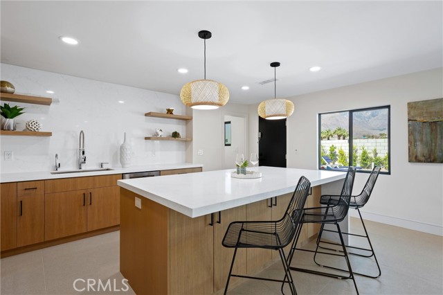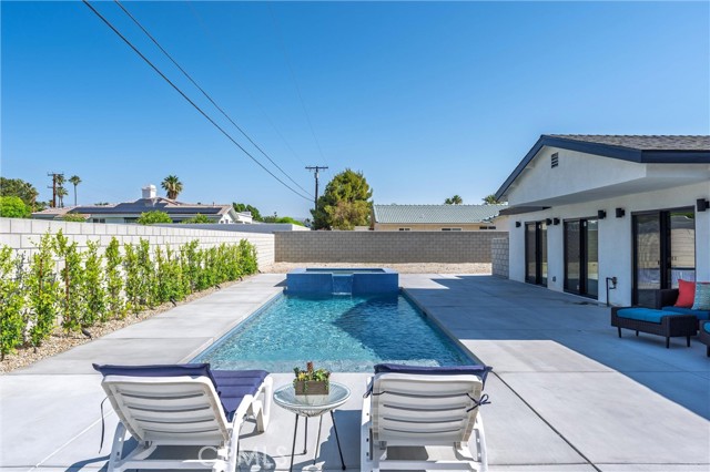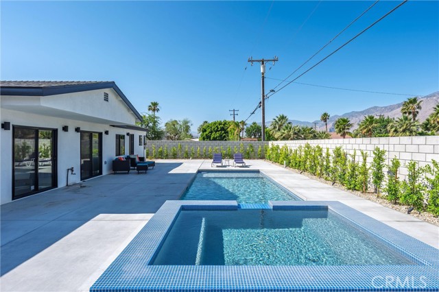 Fully Rebuilt 3 Bed, 3.5 Bath Home with Mountain Views, Designer Kitchen & Brand-New Pool/Spa! This stunning 3 bedroom, 3.5 bathroom home has been completely rebuilt from the ground up with premium finishes and modern design throughout. Enjoy a spacious living area with mountain and pool views, plus a brand-new chef’s kitchen featuring custom cabinets, quartz countertops and backsplash, high-end stainless steel appliances, and a large waterfall-edge island with additional storage. Two bedrooms feature private en-suite bathrooms with custom tile work, while the expansive primary suite includes an oversized tile shower and direct access to the side yard - perfect for morning coffee with a view. The hall bath offers a tub/shower combination. All bathrooms showcase designer finishes with no detail overlooked. The home includes new foundation, plumbing, electrical, framing, insulation, dual-pane windows, doors, and central HVAC system. The beautifully landscaped backyard features a brand-new pebble tec saltwater pool and oversized spa, surrounded by new hardscape, block wall fencing, and drip irrigation. The oversized corner lot includes an extra-wide driveway, side gate for RV/boat parking, and a side yard with ADU or sport court potential. Move-in ready with endless possibilities!