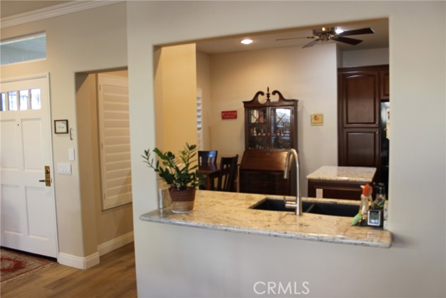 This great 3-bedroom, 2 bath single story home is located near the pool (not too close) and backs and sides to the greenbelt. The condo has been nicely upgraded with vinyl plank flooring throughout, plantation shutters throughout, granite counter tops throughout, fireplace in the living room, and a kitchen with refaced kitchen cabinets, granite covered island, newer gas range & oven, and kitchen nook overlooking the greenbelt. Several rooms have crown molding, an inside laundry room with cabinets and a sink, recessed lighting, and several ceiling fans. The master bedroom is large with two mirrored wardrobes, a vanity with dual sinks & granite, a walk-in shower, and a private toilet closet, and a slider to the rear patio. The rear patio is spacious and private due to being an end unit. Amenities include clubhouse, pools, spa, putting course, tennis, and activities. Easy to show and priced to sell.