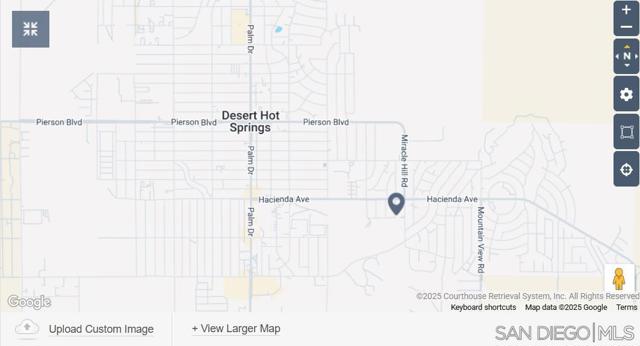 Located directly behind the fully renovated Hacienda Springs Hotel (67485 Hacienda Ave) which will be opening in 2026 and represents great development opportunity! Located near the intersection of Rochelle Road and Maui Way in Desert Hot Springs, CA 92240, this parcel (APN 642-164-003) is one of three neighboring lots being sold. The additional lots available are: MLS# 250044641 (north lot) and MLS# 250044643 (east lot). Seller has indicated property has water rights and documentation to be provided prior to opening escrow. This lot offers wide-open, unobstructed mountain views and is an ideal setting to build your desert dream home. The location is central and convenient, surrounded by established neighborhoods and close to a variety of nearby stores, restaurants, and everyday services. With quick access to Interstate 10, you can easily reach the surrounding cities and amenities throughout the Coachella Valley. This is a prime opportunity to secure a beautiful lot in a growing area with strong long-term potential. Located in the VS-C (Visitor-Serving Commercial) zone, this property is ideal for tourism-focused development, including hotels, resorts, spas, restaurants, and visitor-oriented retail. The zoning also supports hot-mineral-spa facilities and allows attached residential units (up to 15 per acre), offering excellent potential for a destination-style project.