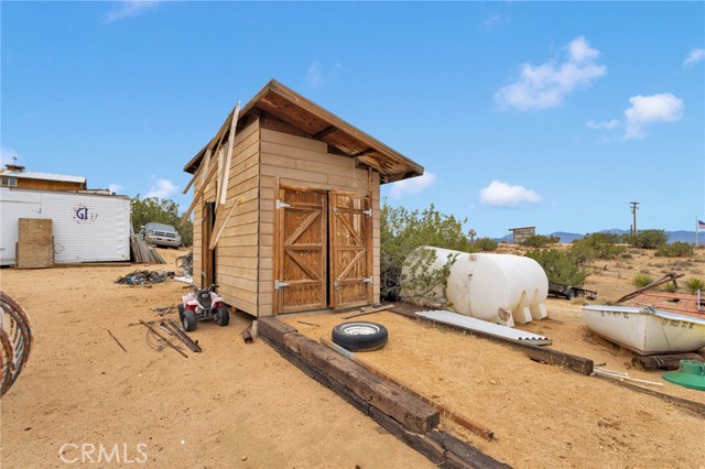Here is your chance to buy in the desirable “Highlands” area of So. Apple Valley! A mile or so up the dirt road, you will find this quaint 1994 two bed, one bath with plenty of parking sitting on 2.5 acres. As you approach down the driveway you see the 1480 sqft covered porch that wraps around to a Car Port and then around to a cozy front covered patio with its peek-a-boo view of the city lights below. This property features a dog run, chicken coop and a two stall horse shelter with tack room and corrals! There are multiple storages and sheds. There is also a work shop (tools don’t stay) and an underground 256' root-cellar, separate from the house. The home is on a well with 6000 gallons of water storage in 2 tanks. Recent upgrades include a newer 2-3 year old roof and newer 2-3 year old 700’ deep well. This property has a lot to offer!