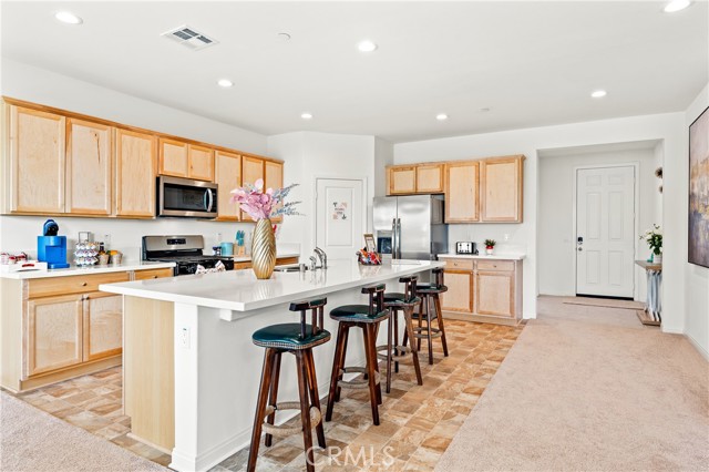 Come take a look at this gorgeous house. This stunning FULLY FURNISHED home comes with astonishing views of the mountain and SOLAR PANELS that help you save on the electric bill. This 2025 built home features 5 Bedrooms and 3 Bathrooms and is only 4 miles away from UCR. First floor has one bedroom with its own private bathroom and carpet throughout the whole bottom floor. Open floor plan includes stainless steel appliances, oversized central island, and large glass doors that lead to the beautiful newly remodeled backyard. Master bedroom includes large walk-in closet with laundry room just steps away from the other rooms. Don't miss this opportunity!