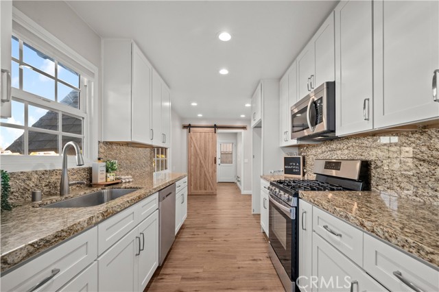 Rare opportunity to own an updated single-story home on an oversized 9,825 sq ft lot with valuable alley access. This 3 bedroom, 2 bathroom home offers 1,278 sq ft of comfortable living space and has been thoughtfully refreshed throughout. The interior features a remodeled kitchen with granite countertops, stainless steel appliances, white cabinetry, luxury vinyl plank flooring, and recessed lighting. Both bathrooms have been updated with modern tile, vanities, and clean finishes. The living room opens to a large sliding door overlooking the expansive backyard. Additional upgrades include dual-pane windows, ceiling fans in all bedrooms, and a newer HVAC system and roof. The long driveway and oversized yard provide flexible parking options, including potential space for RV or boat storage. The property also includes plans for a 1,200 sq ft ADU offering 3 bedrooms, 2 bathrooms, and its own 2-car garage with alley access—excellent for multi-generational living or additional rental income potential. Other highlights include mature trees, a spacious backyard, and an attached 2-car garage. This home offers immediate comfort today with significant development possibilities for tomorrow.