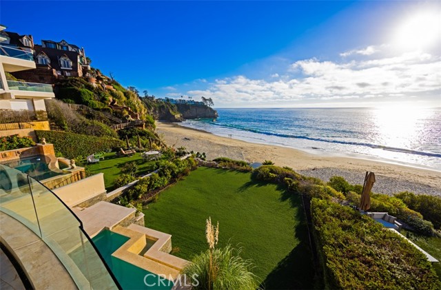 A truly unparalleled offering, this rare oceanfront estate in the coveted, guard-gated enclave of Three Arch Bay presents an extraordinary chance to shape one of Laguna Beach’s most significant coastal properties. Poised above the community’s iconic private cove, the residence commands sweeping, unobstructed views of the Pacific and enjoys direct access to the sand—an amenity few homes along the coast can claim. Set on a sprawling, flat oceanfront parcel with a pool, spa, and meticulously landscaped grounds, the property offers a spectacular setting where land, sea, and architecture converge. The existing structure—stripped to the studs and ready for transformation—provides an exceptional framework for the next owner’s vision. Towering ceilings, vast expanses of glass, floating staircases, and a commercial-grade elevator lay the groundwork for a world-class contemporary retreat that lives in rhythm with the shoreline just beyond. Every level opens to expansive terraces and floor-to-ceiling sliding walls of glass, dissolving the boundary between indoors and out while capturing the drama of the coastline. The lower level spills effortlessly onto the pool terrace and oceanfront lawn, creating a breathtaking backdrop for everyday living and unforgettable gatherings. Thoughtfully designed in collaboration with FRANK and CJ Light, the home is offered with fully approved plans and permits—an invaluable advantage that allows construction to commence immediately, saving years of time and complexity. The plans also provide the ability to expand, including options for two additional bedrooms and a 700-square-foot ADU, further enhancing the estate’s scale, functionality, and value. Residents of Three Arch Bay enjoy exclusive access to an array of private community amenities, including 24/7 guarded entry, a residents-only beach, clubhouse, tennis and basketball courts, playground, and beautifully maintained parks. Moments from world-renowned beaches, celebrated restaurants, and premier schools, this extraordinary estate represents a once-in-a-generation opportunity to craft a legacy home along one of Southern California’s most treasured stretches of coastline.