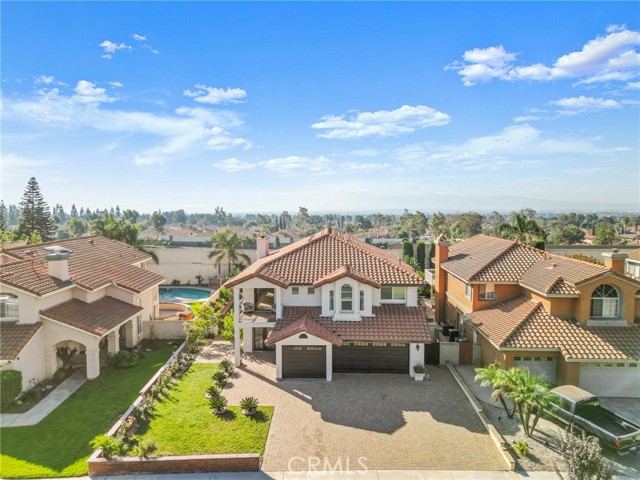 Exceptional elegance defines this custom pool home nestled in one of Rancho Cucamonga’s most prestigious neighborhoods. Offering approximately 3,487 sq. ft. of living space, this elegant residence was crafted with exceptional attention to detail and quality finishes throughout. The stunning curb appeal is enhanced by beautifully manicured landscaping, fragrant rose bushes, and intricate paver work that lead to striking wrought iron double doors. Inside, you’ll find an inviting floor plan filled with natural light, rounded corners, crown molding, high ceilings, and timeless tile flooring. The formal living and dining rooms are ideal for entertaining, while granite pony walls define the spaces without sacrificing the open feel. At the heart of the home is a true chef’s kitchen showcasing an expansive island with exotic granite, custom soft-close cabinetry, and premium stainless steel appliances—all included. Highlights include a built-in refrigerator and freezer, commercial-grade range with pot filler, warming drawer, trash compactor, and walk-in pantry. The adjacent family room offers a stately fireplace and built-in speakers, creating a warm yet sophisticated gathering space. The first floor also features a private guest bedroom and a full bath with a walk-in shower, plus a well-appointed laundry room with ample cabinetry and a prep sink. A graceful wrap-around staircase leads to the second level, where a spacious bonus room and private balcony capture gorgeous mountain views. The luxurious primary suite is a true retreat with its own balcony overlooking the backyard, a spa-inspired ensuite with jetted tub, dual vanities, heated bidet, natural stone finishes, and a digital walk-in shower system. The custom walk-in closet includes built-ins. Three additional bedrooms and a stylish guest bath complete the upstairs. Step outside to a resort-style backyard featuring a sparkling pool and spa, and low-maintenance landscaping with decorative concrete and rock accents. The interior and exterior of the home were recently painted, brand new water heater and the pool was recently replastered. The home also has dual A/C units to ensure year-round comfort. A rare opportunity to own a meticulously designed custom home combining luxury, comfort, and location—just moments from top-rated schools, parks, and shopping in beautiful Rancho Cucamonga.