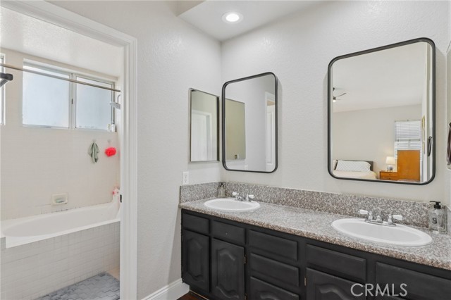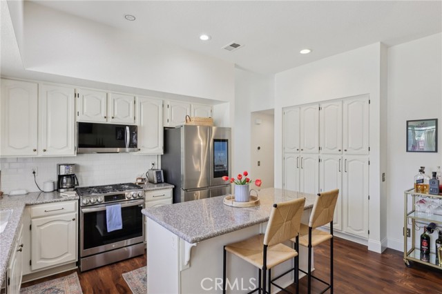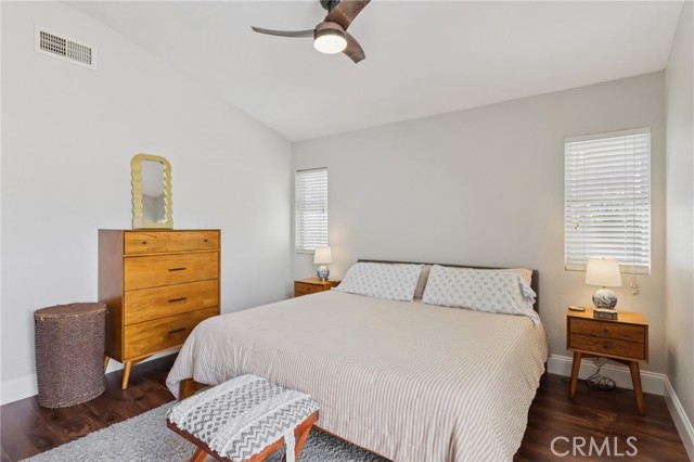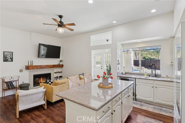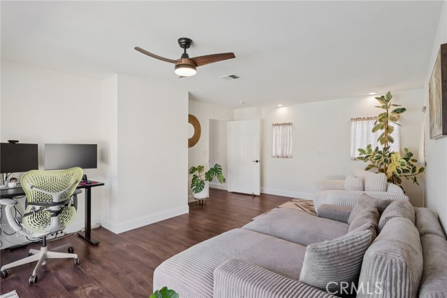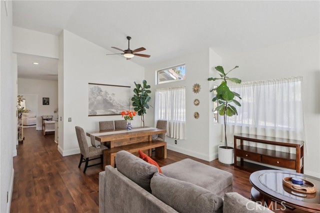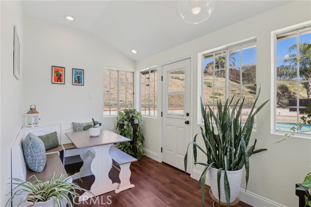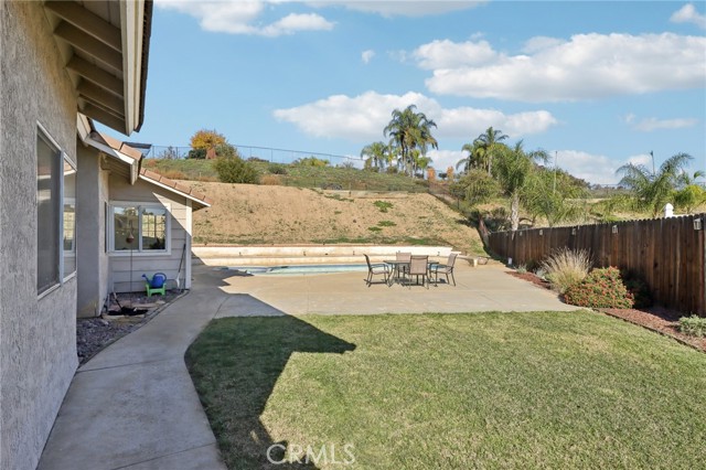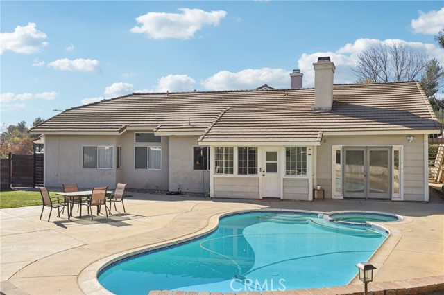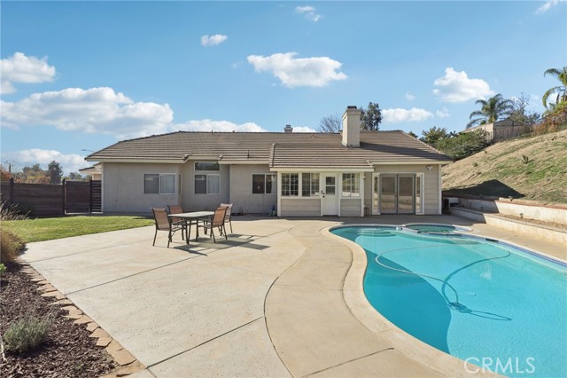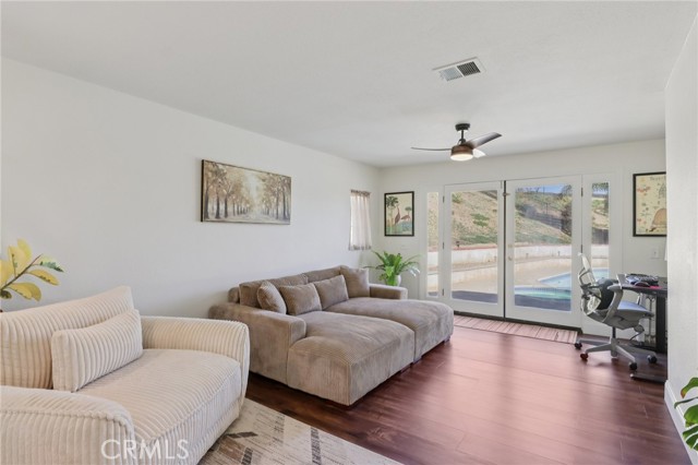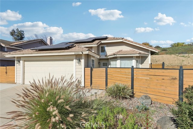 Gorgeous 4 bed, 2 bath pool home is ready for it's next owner and offers great curb appeal, sitting on a cul-de-sac street with large gated front courtyard to enjoy, and Solar Panels! The interior is open and spacious featuring high ceilings, recessed lights, white paint and wood look-vinyl flooring throughout! Enter into the living room and dining area with lots of natural light. The separate family room sits just off of the kitchen and offers a cozy fireplace to enjoy, and there is a sunroom, or could be a breakfast nook or office. The updated kitchen features a center island with bar seating, granite countertops, white cabinetry, and stainless steel appliances including the oven and microwave. All 4 bedrooms are generously sized with the large primary bedroom offering double glass doors to the backyard and a private bathroom with dual sink vanity. There is also a full-size hall bathroom for the secondary bedrooms to share, both bathrooms have been nicely updated, and a laundry room with additional storage completes the first floor. Upstairs you will find a bonus room with private entry exterior entry, great for guests! Enjoy the private in ground pool and spa, there is also a large grass side yard and gorgeous mountain views! Conveniently located near schools, shopping, dining, and No HOA! Schedule your tour today!