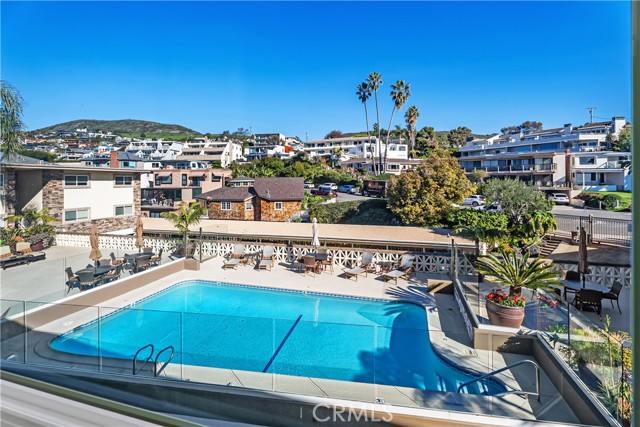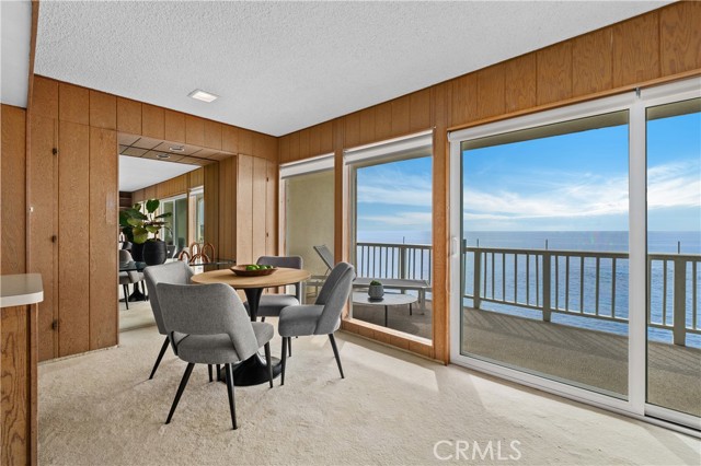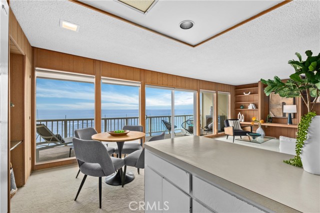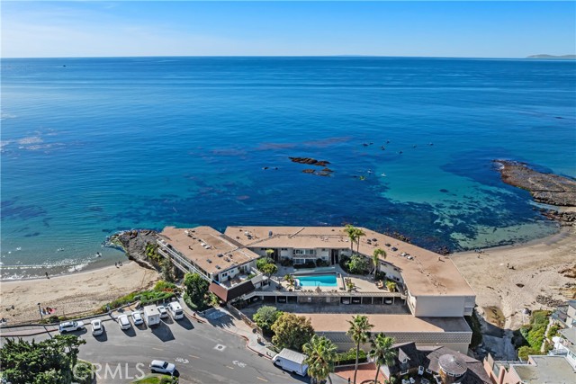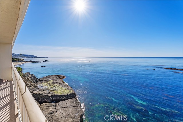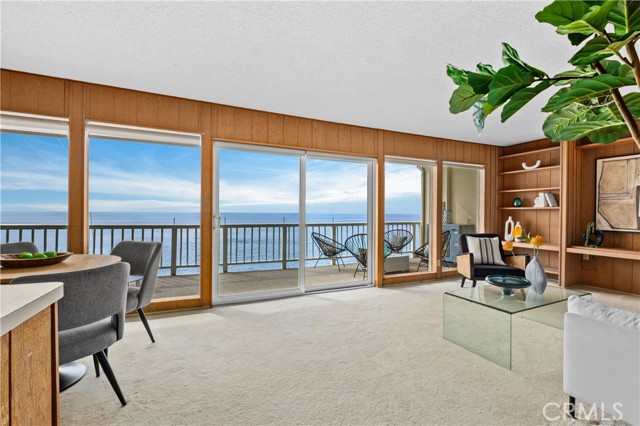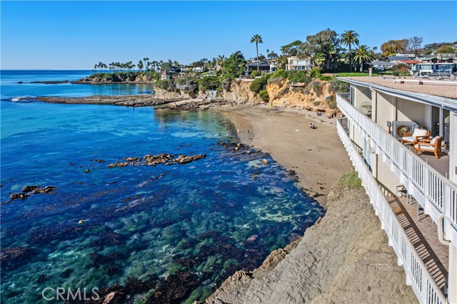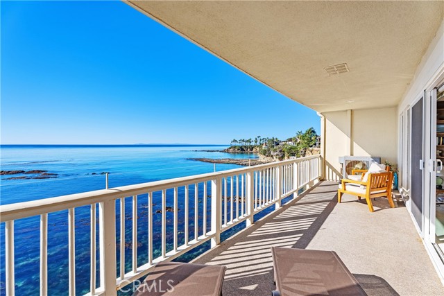 631 Cliff Drive is a rare front-row oceanfront residence, held by the same family since 1971 and positioned directly above the surf in one of Laguna Beach’s most coveted bluff-top communities. This single-level, top-floor two-bedroom, two-bath condominium offers approximately 950 square feet of living space with unobstructed, panoramic views of whitewater, coastline, and sunsets from the main living areas and a full-width, ocean-facing balcony. Perched at the cliff’s edge, the home enjoys a dramatic, front-row vantage point where the sound and motion of the Pacific are ever-present. The balcony spans the width of the residence and extends directly over the rocks and water below, creating a rare sense of being suspended above the coastline. The living and dining areas are oriented directly toward the ocean, forming a seamless connection between the interior and the dramatic coastal setting outside. The interior retains its original character, featuring custom wood shelving and period paneling, offering a unique opportunity for a buyer to reimagine the space while honoring its timeless setting and extraordinary location. Ideally situated between Divers Cove and Boat Canyon, the property provides immediate access to some of Laguna Beach’s most iconic coves, beaches, and coastal walking paths. The gated community features a pool, secure parking, and private direct beach access, further enhancing this exceptional oceanfront offering. 631 Cliff Drive represents a truly irreplaceable opportunity to own a legacy bluff-top property in one of Southern California’s most sought-after coastal settings—where location, view, and history converge.