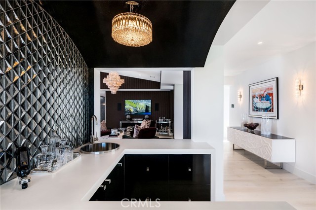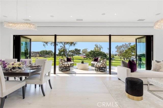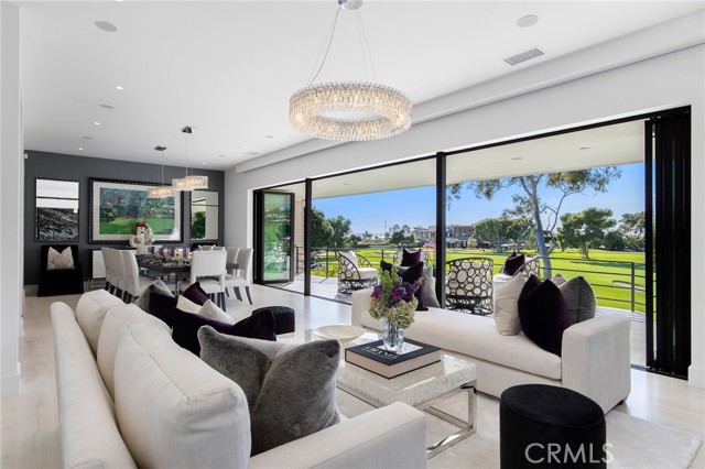 GOLFERS DREAM HOME ON THE 9TH FAIRWAY of the NEWPORT BEACH COUNTRY CLUB - 5 STEPS TO SINGLE LEVEL LIVING – VIEW PROPERTY Unparalleled elegance and sophistication in this one-of-a-kind contemporary masterpiece in the prestigious Granville community of Newport Beach. Designed for the ultimate entertainer, this custom-built estate (completed in 2020) offers breathtaking 180-degree panoramic views of the 9th hole at Newport Beach Country Club, extending beyond to the Pacific Ocean and Catalina Island. Meticulously curated over two years, this home embodies entertainment luxury, seamlessly blending refined materials, state-of-the-art technology, and architectural brilliance. Every element has been crafted w/ an unwavering attention to detail, ensuring an ambiance of exclusivity and indulgence. The heart of this residence is its expansive OPEN-CONCEPT LIVING and DINING areas, featuring the NANO WALL SYSTEM, floor-to-ceiling glass doors that open to a sprawling 320+/- sq. ft. outdoor lounge. This home delivers a flawless indoor-outdoor experience complemented by awe-inspiring sunset vistas. CHEF'S DREAM KITCHEN - 10 burner gas cooktop by WOLF - Side by side SUB-ZERO refrigerators, 4 freezer & 4 additional fridge drawers by Sub-Zero - other WOLF appliances include double ovens, microwave, Steam Convection oven, built-in coffee station that includes a cup warming drawer WINE CONNOISSEUR'S HAVEN - the elevated wine room captivates w/ the ALABASTER BACKLIT WINE WALL - 200+/- bottles and 9 magnums LAVISH PRIMARY SUITE - A spacious sitting area w/private exterior access. A luxurious spa-like BR w/ a jet tub, expansive walk-in shower w/ stone slab walls, ambient lighting shower head and an expansive custom walk-in closet w/ a rolling ladder for elevated storage. SECONDARY SUITE - boasts a private entrance, designer stone finishes, STONE SLAB shower walls, counters, and sink. Built-in Cabinetry with stone countertop for extended storage - SMART HOME INNOVATION & Thoughtful Design - Fully Automated Smart Home system controlling locks, security cameras, lighting, HVAC, AUDIO, Shades and VISUAL equipment - Motorized 75-inch TV hidden above the LR fireplace - Garage w floor-to-ceiling cabinetry - Minutes from the ocean, Balboa Island, and Fashion Island’s world-class shopping and dining. An unparalleled opportunity to own a luxury entertainer’s dream in one of Newport Beach’s most coveted enclaves.