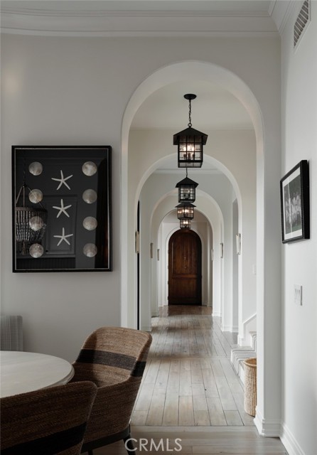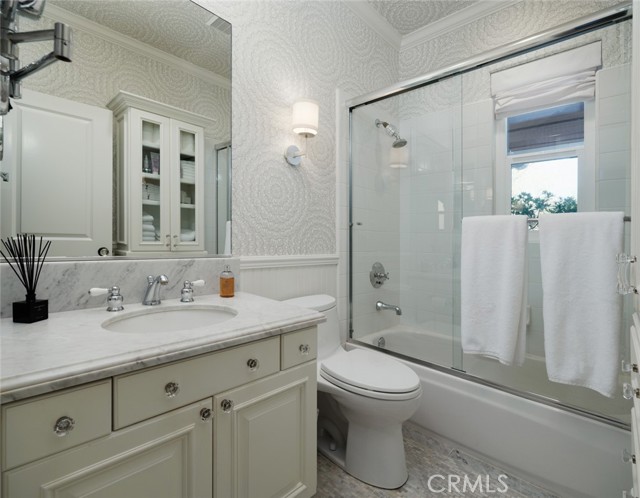 Located within Bonita Canyon, one of Newport Beach’s most coveted guard-gated communities, 9 Boardwalk offers a rare blend of privacy, refined living, and resort-style amenities. Set on a generous 10,037-square-foot lot, this 5-bedroom, 4.5-bath residence spans approximately 4,900 square feet and has been extensively updated. A gracious front porch and elegant entry welcome you into a light-filled interior featuring original wood flooring, professionally refinished to a modern, lighter tone, creating a fresh yet timeless foundation. The home’s thoughtful layout includes an Office, Pool Room and Gym area, complemented by beautifully appointed entertaining and family spaces. The heart of the home is the chef’s kitchen, featuring Quartz countertops, a Carrera marble herringbone backsplash, Sub-Zero refrigeration, dual Viking ovens, Bosch dishwasher, and an oversized center island that flows seamlessly into the family room—ideal for both daily living and entertaining. The primary suite serves as a private retreat, offering a fully remodeled spa-like bathroom with Waterworks fixtures, refined stonework and molding, a custom boutique-style walk-in closet, and a private office or sitting area within the suite. Secondary bedrooms include a charming bunk room with built-ins and a private balcony, two bedrooms joined by a Jack-and-Jill bath, and a guest suite with TV and its own en suite bath. Outdoors, the backyard is designed for year-round enjoyment, highlighted by a pool and spa with a concrete/plaster finish, lighting, and equipment, expansive patio with porch heaters, outdoor dining area, built-in BBQ, gas wood-burning fireplace, and multiple seating and lounge zones. A stunning enclosed outdoor terrace (2023), features a TV, Taj Mahal quartzite fire pit, bench seating, and dining area, creating a true extension of the living space. Additional upgrades include custom aluminum doors and windows (2025), dual-zone HVAC, renovated garage with cabinetry and epoxy floors, enhanced drainage and irrigation systems, and full perimeter security with cameras and Ring doorbell. Residents enjoy Bonita Canyon’s premier amenities including 24-hour guard gate, resort pool and spa, tennis courts, park and playground, all with an HOA of $435 per month. This is a turn-key, Level-10 offering—designed for luxury living, effortless entertaining, and the best of Newport Beach.
